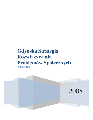 Gdyńska Strategia Rozwiązywania Problemów Społecznych 2008-2013 2008 Gdyńska Strategia Rozwiązywania Problemów Społecznych 2008-2013 Spis treści WPROWADZENIE ............................................................................................................ 2 Główne zadania Strategii........................................................................................................2 Założenia przyjęte w toku prac nad Strategią .......................................................................3 1. Diagnoza problemów społecznych w Gdyni i obszary problemowe .............................. 4 1.1 Demografia ..................................................................................................................4 1.2 Kondycja gdyńskich rodzin ......................................................................................... 7 1.3 Osoby z niepełnoprawnością w Gdyni.........................................................................9 1.4 Skala zjawiska gdyńskiej bezdomności ..................................................................... 10 2. Problemy horyzontalne .............................................................................................. 12 2.1 Problematyka rynku pracy........................................................................................ 12 2.2 Ubóstwo ................................................................................................................... 15 2.3 Uzależnienia.............................................................................................................. 16 3. Analiza SWOT ............................................................................................................ 18 4. Wizja sytuacji społecznej w Gdyni w roku 2013 w zakresie rozwiązywania problemów społecznych ............................................................................................................... 25 5. Priorytety, cele, zadania ............................................................................................. 25 6. Wdrożenie Strategii ................................................................................................... 27 6.1 Fazy wdrożenia Strategii Rozwiązywania Problemów Społecznych ......................... 27 6.2 Struktura zarządzania ............................................................................................... 27 7. Metodyka pracy nad Strategią Rozwiązywania Problemów Społecznych. Proces konsultacji społecznych. ............................................................................................ 29 Strona 1 Gdyńska Strategia Rozwiązywania Problemów Społecznych 2008-2013 WPROWADZENIE Gdyńska Strategia Rozwiązywania Problemów Społecznych to przedstawiona w formie dokumentu koncepcja działań zmierzających do utworzenia trwałego systemu rozpoznawania zagrożeń społecznych w mieście, ich profilaktyki, jak również koncepcja działań zmniejszających skutki problemów społecznych. Strategia ma również przyczynić się do budowy systemu skutecznej interwencji w obliczu bezpośrednich zagrożeń dla prawidłowego funkcjonowania (dobrostanu) mieszkańców Gdyni. Gdyńska Strategia Rozwiązywania Problemów Społecznych uszczegóławia cele Strategii Rozwoju Gdyni (Cele 2, 3, 4 i 6) zawarte w priorytecie drugim pt. „Gdynianie” i jest swoistą kontynuacją idei w niej przedstawionych. Priorytet „Gdynianie” grupuje działania władz miasta związane z poziomem życia mieszkańców Gdyni, ich wiedzy i kwalifikacji. Niniejszy dokument nawiązuje do strategii wojewódzkiej - Priorytet 1. Rozwój kapitału ludzkiego oparty na wiedzy i aktywności (Cele 1, 2, 3) oraz Priorytet 4. Kreowanie wysokiej jakości życia (Cele 1, 7). Ponadto swoją treścią koresponduje ze wszystkimi priorytetami i celami Strategii Polityki Społecznej Województwa Pomorskiego. Taka konstrukcja gwarantuje, iż cele zapisane w Gdyńskiej Strategii Rozwiązywania Problemów Społecznych znajdują się w głównym nurcie działań podejmowanych przez samorząd miasta i województwa. Główne zadania Strategii obejmują: Diagnozę sytuacji społecznej Gdyni; Nakreślenie wizji systemu reagowania na problemy społeczne Gdyni; Przyporządkowanie konkretnym podmiotom, na zasadach partnerskich konsultacji, zakresu prac nad planowaniem i wdrożeniem zsynchronizowanego systemu profilaktyki i rozwiązywania problemów społecznych; Określenie merytorycznej podstawy tworzenia programów i projektów pomocowych w obszarze wsparcia społecznego; Wypełnienie wymogów Unii Europejskiej dotyczących właściwego zagospodarowania środków pochodzących z funduszy strukturalnych. Strona 2 Gdyńska Strategia Rozwiązywania Problemów Społecznych 2008-2013 Założenia przyjęte w toku prac nad Gdyńską Strategią Rozwiązywania Problemów Społecznych: a. Rozwiązywanie problemów społecznych to wprowadzanie optymalnych sposobów systematycznego reagowania, których celem jest zapobieganie negatywnym zjawiskom i minimalizowanie ich skutków w gdyńskiej społeczności. b. Jakość życia mieszkańców Gdyni uzależniona jest od stopnia współodpowiedzialności i współdziałania poszczególnych uczestników życia społecznego miasta. c. Proces realizacji Strategii musi respektować prawo do godnego życia oraz równego dostępu każdego mieszkańca Gdyni do wsparcia i usług oferowanych przez miasto. d. Planowanie strategiczne powinno ujmować pełen zakres oddziaływania, tj. diagnozę, profilaktykę, rozwiązywanie problemów narastających w czasie oraz działania ratunkowe / interwencyjne. e. Sposób wdrożenia Strategii powinien modelować pojawiające się inicjatywy tak, aby były zorientowane na osiągnięcie konkretnych, wymiernych rezultatów. f. Praca nad aktualizacją Strategii ma mieć charakter otwarty dla wszelkich podmiotów zaangażowanych w problematykę społeczną. g. Strategia zawiera w sobie