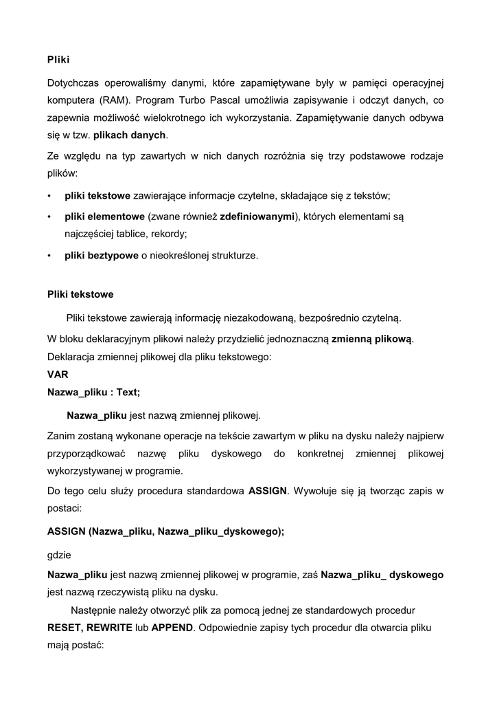 komputera (RAM). Program Turbo Pascal umożliwia zapisywanie i odczyt danych, co