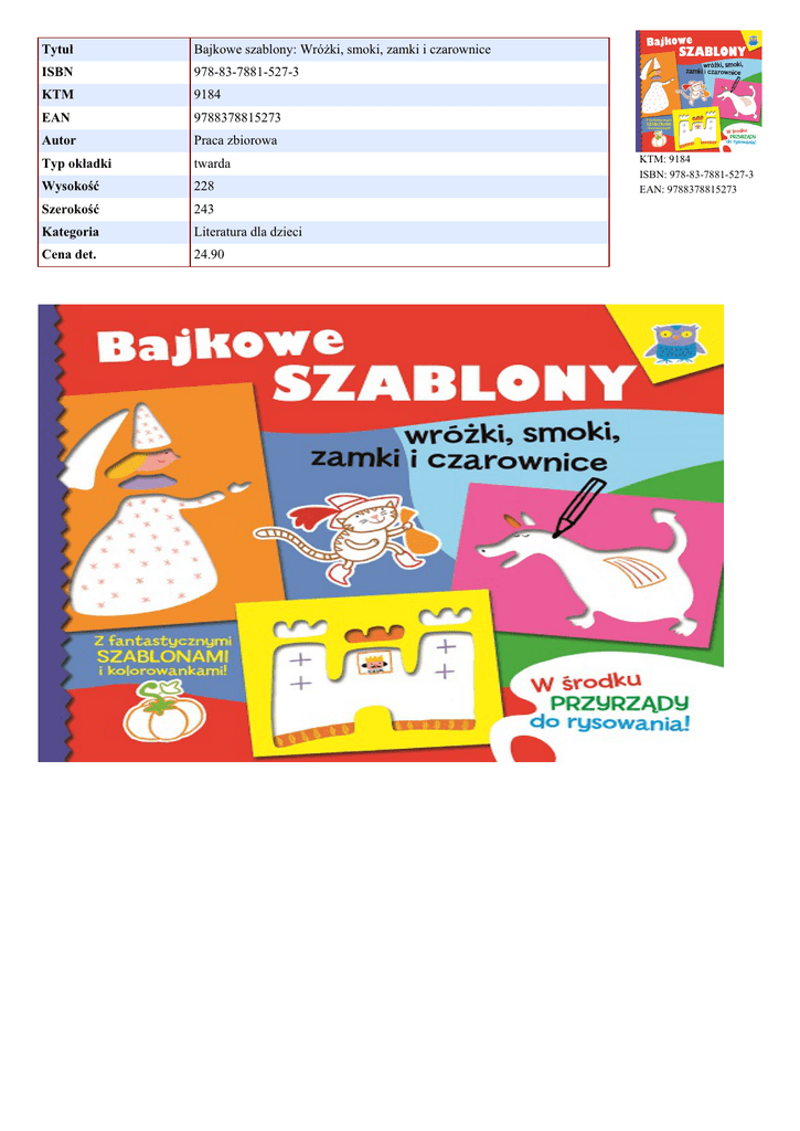 Tytuł Bajkowe szablony: Wróżki, smoki, zamki i czarownice ISBN