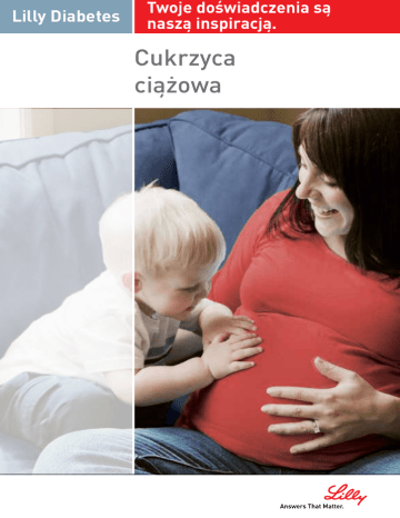 Lilly Diabetes Twoje doświadczenia są naszą inspiracją. Cukrzyca ciążowa Cukrzyca ciążowa Cukrzyca w okresie ciąży występuje u około 3% kobiet. Taka cukrzyca nazywana jest cukrzycą ciążową. Cukrzyca ciążowa jest odmianą cukrzycy, która zazwyczaj pojawia się w drugim lub trzecim trymestrze (tzn. po pierwszych 12 tygodniach ciąży). Dzieje się tak, gdy organizm nie potrafi sam kontrolować poziomu glukozy we krwi (określanego również jako poziomu cukru we krwi). Przypuszcza się, że jest to wynikiem działania hormonów wytwarzanych podczas ciąży, które blokują działanie insuliny w organizmie. Insulina odpowiada za kontrolowanie stężenia glukozy we krwi. U kobiet, u których wystąpiła cukrzyca ciążowa, poziom wytwarzanej insuliny jest niewystarczający do przeciwdziałania temu efektowi blokowania. Utrzymywanie niskiego poziomu glukozy we krwi Istotnym jest, aby kontrolować poziom glukozy we krwi podczas ciąży. Jeżeli w krwi pacjentki znajduje się zbyt dużo glukozy, organizm dziecka może zacząć produkować insulinę, aby sobie z tym poradzić. Ta dodatkowa insulina może spowodować nadmierny wzrost masy dziecka, a w rezultacie, spowodować utrudnienia w czasie porodu i potencjalne szkody w organizmie matki i dziecka. Oprócz tego, u dziecka, którego organizm wytwarza dodatkową insulinę może wystąpić niski poziom glukozy we krwi po urodzeniu, a to z kolei może mieć wpływ na pierwsze godziny życia dziecka. Twój zespół specjalistów pomoże w kontrolowaniu poziomu glukozy we krwi. Otrzymasz ogólne porady i wsparcie w kwestii nadzorowania poziomu glukozy we krwi, zdrowego odżywiania i aktywności fizycznej. Jeżeli poziom glukozy będzie u Ciebie nadal zbyt wysoki, może wówczas zostać zalecone przyjmowanie insuliny. Specjalistyczny zespół diabetologów Zespół diabetologów to specjalistyczny personel medyczny, posiadający zaawansowaną wiedzę i doświadczenie w zapewnianiu wsparcia osobom chorym na cukrzycę. Zespoły takie mogą składać się na przykład z lekarzy rodzinnych, specjalistów szpitalnych, pielęgniarek specjalizujących się w cukrzycy i dietetyków. W przypadku pacjentek w ciąży, które cierpią na cukrzycę, zespół diabetologów zostanie poszerzony o lekarzy ze specjalistyczną wiedzą na temat wpływu cukrzycy na ciążę np.: położna specjalizująca się w cukrzycy lub ginekolog położnik. W niniejszej broszurze poszerzony zespół diabetologiczny nazywany jest specjalistycznym zespołem diabetologicznym. Sprawdzanie poziomu glukozy we krwi Osoby chore na cukrzycę uczą się, jak sprawdzać swój poziom glukozy we krwi. Otrzymasz specjalny sprzęt, abyś mogła dokonywać tego sama i zostaniesz przeszkolona w kwestii sposobu i czasu wykonywania takiego badania. Uzyskasz również informacje na temat docelowego poziomu glukozy we krwi oraz wpływu, jaki wywiera na to odpowiednia dieta oraz wykonywanie ćwiczeń fizycznych. Zdarza się, że krew kobiet chorujących na cukrzycę ciążową jest wysyłana do laboratorium w celu przeprowadzenia badań. Zespół specjalistów poinformuje Ciebie jak powinien kształtować się poziom glukozy we krwi w Twoim przypadku. Należy zapisać te informacje w wyznaczonym do tego miejscu poniżej. Twoje poziomy glukozy we krwi Twój poziom glukozy we krwi na czczo powinien wynosić: 1-2 godziny po posiłku, Twój poziom glukozy we krwi powinien wynosić: W okresie ciąży, pacjentkom powinno zostać również zaproponowane przeprowadzanie regularnych badań moczu na obecność protein oraz badań ciśnienia krwi. Mogą one również zostać skierowane na badanie USG w celu sprawdzenia rozmiaru dziecka (zależy to od możliwości przeprowadzania takiego badania w rejonie zamieszkania pacjentki). Zdrowe odżywianie Pacjentki powinny otrzymać porady na temat zdrowego odżywiania od dietetyka lub pielęgniarki specjalizującej się w cukrzycy. Ogólnym zaleceniem jest spożywanie większej ilości owoców, warzyw i niskotłuszczowych produktów mlecznych. Należy zaprzestać spożywania słodkich, wysokotłuszczowych pokarmów, takich jak ciasta czy herbatniki. Kwas foliowy W okresie pierwszych 12 tygodni ciąży należy codziennie przyjmować kwas foliowy. Leczenie W przypadku, gdy pacjentka przestrzega zaleceń swojego zespołu specjalistów, jednakże jej poziom glukozy we krwi jest nadal zbyt wysoki, może się zdarzyć, że koniecznym będzie rozpoczęcie przyjmowania insuliny. Zespół specjalistów wyjaśni, w jaki sposób należy przyjmować insulinę i jakie będą tego efekty. Szczególnie na początku przyjmowania insuliny, pacjentki powinny uzyskać informacje na temat hipoglikemii (występowania epizodów hipoglikemii, patrz tabela obok). Hipoglikemia występuje wówczas, gdy poziom glukozy we krwi jest bardzo niski (zazwyczaj poniżej 4 mmol/l). W przypadku kobiet, które prowadzą pojazdy, powinny one poinformować Agencję Licencjonowania Kierowców i Pojazdów - DVLA (ang. Driver and Vehicle Licensing Agency), że chorują na cukrzycę ciążową i przyjmują leki. Nie będzie to miało wpływu na możliwość prowadzenia pojazdów, chyba że chore cierpią na hipoglikemię powodującą kalectwo - zespół specjalistów powinien udzielić porad w tym zakresie. Jeżeli leczenie trwa dłużej niż 3 miesiące, obowiązkiem chorych jest poinformowanie agencji DVLA ponownie. Radzenie sobie z hipoglikemią przy przyjmowaniu insuliny Hipoglikemia występuje wówczas, gdy poziom glukozy we krwi jest bardzo niski (zazwyczaj poniżej 4 mmol/l) • Regularnie przeprowadzaj badania poziomu glukozy we krwi - zawsze sprawdzaj poziom glukozy przed narażeniem siebie lub innych osób na ryzyko uczucia senności lub omdlenia (np.: podczas prowadzenia pojazdu) - zawsze badaj krew przed wykonywaniem dłuższej sesji ćwiczeń •Noś przy sobie coś, co zapewniłoby szybką dostawę glukozy podczas objawów rozpoczynającego się epizodu hipoglikemii, w postaci: - 