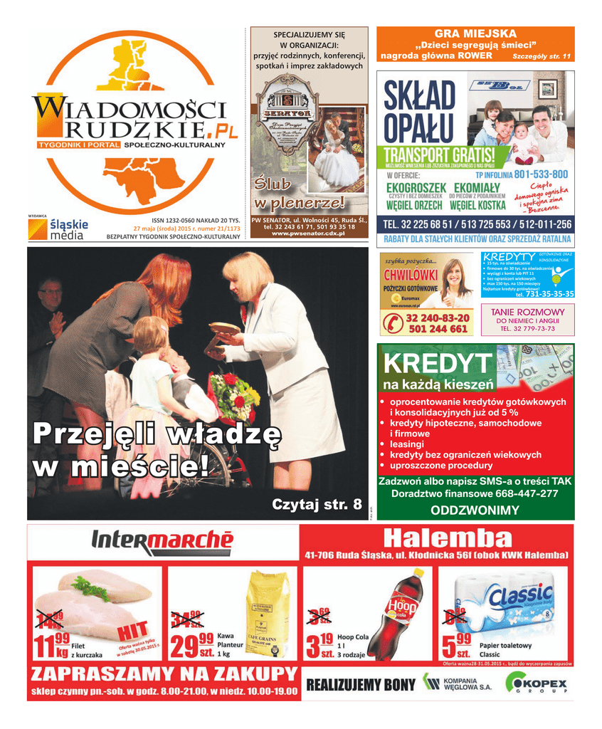 GRA MIEJSKA SPECJALIZUJEMY SIĘ W ORGANIZACJI: przyjęć rodzinnych, konferencji, spotkań i imprez zakładowych ,,Dzieci segregują śmieci” nagroda główna ROWER Szczegóły str. 11 Ślub w plenerze! WYDAWCA ISSN 1232-0560 NAKŁAD 20 TYS. 27 maja (środa) 2015 r. numer 21/1173 BEZPŁATNY TYGODNIK SPOŁECZNO-KULTURALNY PW SENATOR, ul. Wolności 45, Ruda Śl., tel. 32 243 61 71, 501 93 35 18 www.pwsenator.cdx.pl KREDYTY • 15 tys. na oświadczenie GOTÓWKOWE ORAZ KONSOLIDACYJNE • firmowe do 30 tys. na oświadczenie • wyciągi z konta lub PIT 11 • bez ograniczeń wiekowych • max 150 tys. na 150 miesięcy Najtańsze kredyty gotówkowe! tel. 731-35-35-35 TANIE ROZMOWY DO NIEMIEC I ANGLII TEL. 32 779-73-73 KREDYT na każdą kieszeń • oprocentowanie kredytów gotówkowych i konsolidacyjnych już od 5 % • kredyty hipoteczne, samochodowe i firmowe • leasingi • kredyty bez ograniczeń wiekowych • uproszczone procedury Przejęli władzę w mieście! Foto: arch. Czytaj str. 8 Zadzwoń albo napisz SMS-a o treści TAK Doradztwo finansowe 668-447-277 ODDZWONIMY www.wiadomoscirudzkie.pl MIASTO | 27.05.2015 2 SESJA RADY MIASTA WYBORY PREZYDENCKIE 2015 Kolejna sesja za nami Prezydentem RP został Andrzej Duda W niedzielę odbyła się druga tura wyborów na prezydenta RP. Rudzianie mogli wybierać spośród kandydatów, którzy w pierwszym głosowaniu zdobyli najwięcej głosów. Ostatecznie wygrał Andrzej Duda – kandydat Prawa i Sprawiedliwości. Zmiany w budżecie miasta i wieloletniej prognozie finansowej, sprawozdania z działalności rudzkich instytucji kultury oraz wniesienie nowych udziałów do MPGM-u – to niektóre z tematów, poruszanych przez radnych podczas czwartkowej (21.05.) sesji Rady Miasta. Tym razem przebiegała ona stosunkowo szybko i bez dłuższych dyskusji. Bronisław Komorowski otrzymał 48,45 proc. Frekwencja w całym kraju wyniosła 55,3 proc., a w naszym mieście – 53,31 proc. Na Andrzeja Dudę zagłosowało w Rudzie Śląskiej 51,39 proc., a na Bronisława Komorowskiego – 48,61 proc. Joanna Oreł li Bronisław Komorowski (PO) i Andrzej Duda (PiS). Swój głos rudzianie w niedzielę mogli oddać w 80 obwodowych komisjach wyborczych w naszym mieście. Ostatecznie wygrał Andrzej Duda, który zdobył 51,55 proc. Natomiast dotychczasowy prezydent, W związku z tym, że w pierwszej turze wyborów żaden z kandydatów nie uzyskał wymaganej większości głosów (50 proc.), na 24 maja zarządzono drugą turę wyborów, w której wzięło udział dwóch kandydatów (w pierwszej turze zdobyli oni największą liczbę głosów), czy- E������ ���������� W podzięce za wspólne lata – Jestem w Polskim Związku Emerytów, Rencistów i Inwalidów już 47 lat. O tym, by się zapisać zdecydowałam zaraz po śmierci męża – opowiada Łucja Szincel, 92-letnia mieszkanka Wirku. – Wspólne spotkania i wyjazdy zawsze były dla mnie rozrywką. Choć teraz nie uczestniczę czynnie we wszystkim, co się dzieje wokół związku, nadal staram się przychodzić na spotkania – dodaje. To była 14. sesja Rady Miasta obecnej kadencji. Tradycyjnie już na początku obrad przedstawiono sprawozdanie z działań prezydent Grażyny Dziedzic w okresie międzysesyjnym. Tutaj najważniejszymi punktami były: rozstrzygnięcie Krajowej Izby Odwoławczej ws. przetargu na budowę trasy N-S oraz opinia RIO na temat budżetu. – Regionalna Izba Obrachunkowa uchwałą z kwietnia pozytywnie zaopiniowała wykonanie budżetu za 2014 rok z trzema zastrzeżeniami, do których złożono odwołanie – wyjaśniała w imieniu prezydent sekretarz miasta Grażyna JandułaJonda. Dłuższa dyskusja wywiązała się w punkcie obrad dotyczącym zmian w budżecie oraz w wieloletniej prognozie fi- 13 nansowej. Radni dopytywali m.in. o wywołaną w związku z tym sprawę rozliczeń płatności z Kompanią Węglową. Ciekawym tematem było również wprowadzenie do wieloletniej prognozy finansowej zapisu o stworzeniu nowego przedsięwzięcia „Wirtualne zabytki Rudy Śląskiej”, które ma zostać zrealizowane do końca 2017 roku. Następnie radni przegłosowali m.in. projekty uchwał w sprawie zatwierdzenia sprawozdań finansowych za 2014 rok Miejskiego Centrum Kultury oraz Miejskiej Biblioteki Publicznej, a także wniesienia nowych udziałów do spółki Miejskie Przedsiębiorstwo Gospodarki Mieszkaniowej. Joanna Oreł Foto: MS Foto: JO W poniedziałek (25.05.) w restauracji Słowiczek odbyło się specjalne spotkanie rudzkich emerytów. – Zarząd koła dzielnicowego nr 10 w Wirku w związku z tym, że mamy już ogromną liczbę członków, postanowił uhonorować długoletnich działaczy należących do Polskiego Związku Emerytów, Rencistów i Inwalidów. To novum w naszym mieście, które postanowiłem zainicjować, by wyróżnić tych, którzy płacą składki od wielu lat, wspomagając przez to naszą działalność – tłumaczył Henryk Piórkowski, przewodniczący koła nr 10. Podczas spotkania wyróżniono 22 członków koła, którzy uczestniczą w życiu PZERiI od 21 do 47 lat. W ciągu pięciu lat liczba członków wireckiego koła wzrosła z 200 do 500. Magdalena Szewczyk Podczas spotkania uhonorowano członków koła. BYKOWINA 99 1 opak. 1 99 QUADROCOPTER – LATAJĄCY DRON PROMOCJA DO 1.06.2015 129 99 SZT. Osobom do lat 18 alkoholu nie sprzedajemy KAWA JACOBS KRÖNUNG 500 g DO WYCZERPANIA ZAPASÓW REKLAMA PIWO TYSKIE 0,5 l DO WYCZERPANIA ZAPASÓW Ruda Śl.-Bykowina, ul. Górnośląska 13 SER KASZTELAN SIERPC 14 99 11 99 OD 28.05. DO 1.06.2015 SZT. 9 99 KG KG ŻEBERKA WIEPRZOWE OD 28.05. DO 1.06.2015 KG KIEŁBASA MUSZKIETERSKA NA GRILL OD 28.05. DO 1.06.2015 REALIZUJEMY GÓRNICZE BONY ŻYWIENIOWE 3 www.wiadomoscirudzkie.pl BEZPIECZEŃSTWO |27.05.2015 Z RUDZKICH DRÓG Czas na drogowe rewolucje. Co powinni o nich wiedzieć kierowcy? W życie weszły nowe przepisy dotyczące ruchu drogowego. Zmian jest wiele, a niektóre kary są surowsze. Mogą