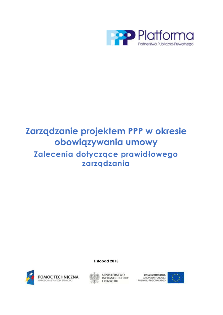 777 Zarządzanie projektem PPP w okresie obowiązywania umowy Zalecenia dotyczące prawidłowego zarządzania Listopad 2015 Warunki korzystania z niniejszej publikacji Niniejsza publikacja została opracowana w celu wzbogacenia i pobudzenia dyskusji na temat partnerstwa publiczno – prywatnego, a także w celu propagowania dobrych praktyk w tej dziedzinie. Obserwacje, analizy, interpretacje i wnioski zawarte w przedmiotowym materiale nie stanowią oficjalnego stanowiska Ministerstwa Infrastruktury i Rozwoju (MIR) i nie mogą stanowić podstawy do formułowania jakichkolwiek roszczeń. Ponadto, MIR nie odpowiada za błędne interpretacje treści publikacji, ani za następstwa czynności podjętych na ich podstawie. Wobec powyższego użytkownik korzystający z informacji zawartych w niniejszej publikacji czyni to na swoją wyłączną odpowiedzialność. Dokument może zawierać odesłania do serwisów internetowych podmiotów trzecich. MIR nie ponosi odpowiedzialności za takie serwisy, a korzystanie z nich może podlegać szczegółowym warunkom. Oryginalna publikacja została wydana przez Europejskie Centrum Wiedzy PPP (EPEC). Niniejszy materiał stanowi tłumaczenie oryginału. Tłumaczenie zostało wykonane na zlecenie MIR. EPEC nie zweryfikował tłumaczenia z języka angielskiego, w związku z tym zleceniodawca tłumaczenia ponosi wyłączną odpowiedzialność za jego treść. EPEC i MIR upoważniają odbiorców niniejszego dokumentu do jego użytkowania, pobierania, wyświetlania i powielania oraz do drukowania kopii jego treści przy czym odbiorcy są proszeni o podawanie w takim przypadku źródła cytowanych materiałów. EPEC i MIR nie wyrażają zgody do wykorzystywania niniejszego dokumentu lub jego treści do celów komercyjnych. 2 Spis treści WPROWADZENIE 4 ROZDZIAŁ 1 7 PLANOWANIE ZARZĄDZANIA NA ETAPIE OPERACYJNYM 7 Temat 1 - Powołanie zespołu ds. zarządzania na etapie operacyjnym 9 Temat 2 - Nadzór nad zarządzaniem etapem operacyjnym 15 Temat 3 - Umowa PPP: główne narzędzie zarządzania na etapie operacyjnym 20 Temat 4 - Opracowanie przyjaznej dla użytkownika instrukcji zarządzania umową 24 Temat 5 - Narzędzia do zarządzania informacją i danymi 27 Temat 6 - Model finansowy na potrzeby zarządzania etapem operacyjnym 32 Lista sprawdzająca 1 - Planowanie zarządzania na etapie operacyjnym 35 ROZDZIAŁ 2 36 REALIZACJA ZARZĄDZANIA ETAPEM OPERACYJNYM 36 Temat 7 - Zapobieganie sporom i zarządzanie konfliktami 37 Temat 8 - Przeprowadzanie okresowych przeglądów 39 Temat 9 - Zarządzanie zmianami w projekcie 43 Temat 10 – Zarządzanie zakończeniem obowiązywania umowy 45 Lista sprawdzająca 2 - Funkcjonowanie zarządzania na etapie operacyjnym 47 ZAŁĄCZNIK – DODATKOWE INFORMACJE W JĘZYKU ANGIELSKIM 49 3 Wprowadzenie Tematem niniejszej publikacji jest „zarządzanie na etapie operacyjnym” projektem PPP. Przez zarządzanie na tym etapie rozumie się zarządzanie projektem PPP przez Zamawiającego od momentu podpisania do końca okresu obowiązywania umowy. Zarządzanie na etapie operacyjnym ma miejsce zarówno na etapie robót budowlanych, jak i świadczenia usług w ramach projektu PPP i obejmuje: - działania związane z „zarządzaniem umową”, tj. bieżące administrowanie umową PPP; - działania związane z ogólnym „zarządzaniem projektem”, m.in. takie, które wynikają z (i) obowiązków Zamawiającego, określonych w umowie PPP oraz (ii) z ewentualnych zmian wymagań w trakcie realizacji projektu. Dlaczego jest to ważna kwestia? Jak pokazuje doświadczenie, usługi zlecane podmiotom z sektora prywatnego wymagają od zamawiającego tyle samo, jeśli nie więcej, zaangażowania, niż w te wykonywane we własnym zakresie. Widać to doskonale na przykładzie umów PPP, które, choć oparte na wynikach, wymagają od zamawiającego niemałego wysiłku organizacyjnego. Racjonalne zarządzanie na etapie operacyjnym ma zatem kluczowe znaczenie dla sukcesu PPP. 1 Nieumiejętność odpowiedniego zarządzania projektem obniża jego wartość w stosunku do ceny, a w skrajnych przypadkach może podważyć jego celowość. Przyczyn nieumiejętnego zarządzania jest wiele i są one związane z charakterystyką projektów realizowanych w ramach PPP, które z reguły: - opierają się na umowach długoterminowych, w przypadku których nawet niewielkie odstępstwa mogą mieć niebagatelny, pozytywny lub negatywny wpływ na wynik projektu w długiej perspektywie; - najczęściej obejmują skomplikowane projekty, w odniesieniu do których na początku trudno jest przewidzieć wszystkie potencjalne przyszłe zdarzenia, w związku z czym Zamawiający powinien zapewnić sobie odpowiednie pole manewru; - co do zasady projekty PPP są opracowywane pod kątem osiągania założonych wyników ekonomicznych i efektywności, co wymaga sprawowania ścisłej kontroli w celu zapewnienia, że projekt będzie funkcjonował prawidłowo, a jakość świadczonych usług będzie adekwatna do poniesionych nakładów. Ponadto umowa PPP (na mocy której ryzyko zostaje podzielone pomiędzy Zamawiającym a partnerem prywatnym) znajduje się w samym centrum relacji pomiędzy stronami. Ustalonym na początku podziałem ryzyka należy zarządzać przez cały okres realizacji projektu, co pozwala: - wyjaśniać i/lub modyfikować ten podział, w sytuacji pojawienia się nieprzewidzianych ryzyk lub konsekwencji ich wystąpienia; zagwarantować, że partner prywatny ponosi ryzyka, które na siebie przejął zgodnie z ustaleniami i odpowiednio je minimalizuje; Więcej szczegółowych informacji, patrz np. Ipsos MORI, “Investigating the performance of operational PFI contracts”, 2008. 1 4 - monitorować i skutecznie zarządzać ryzykami, które ponosi Zamawiający. Zarządzanie na etapie operacyjnym służy Zamawiającemu do ochrony swojej pozycji jako strony umowy przez cały okres jej obowiązywania. W razie pojawienia się problemów z bieżącą realizacją umowy PPP, co mo