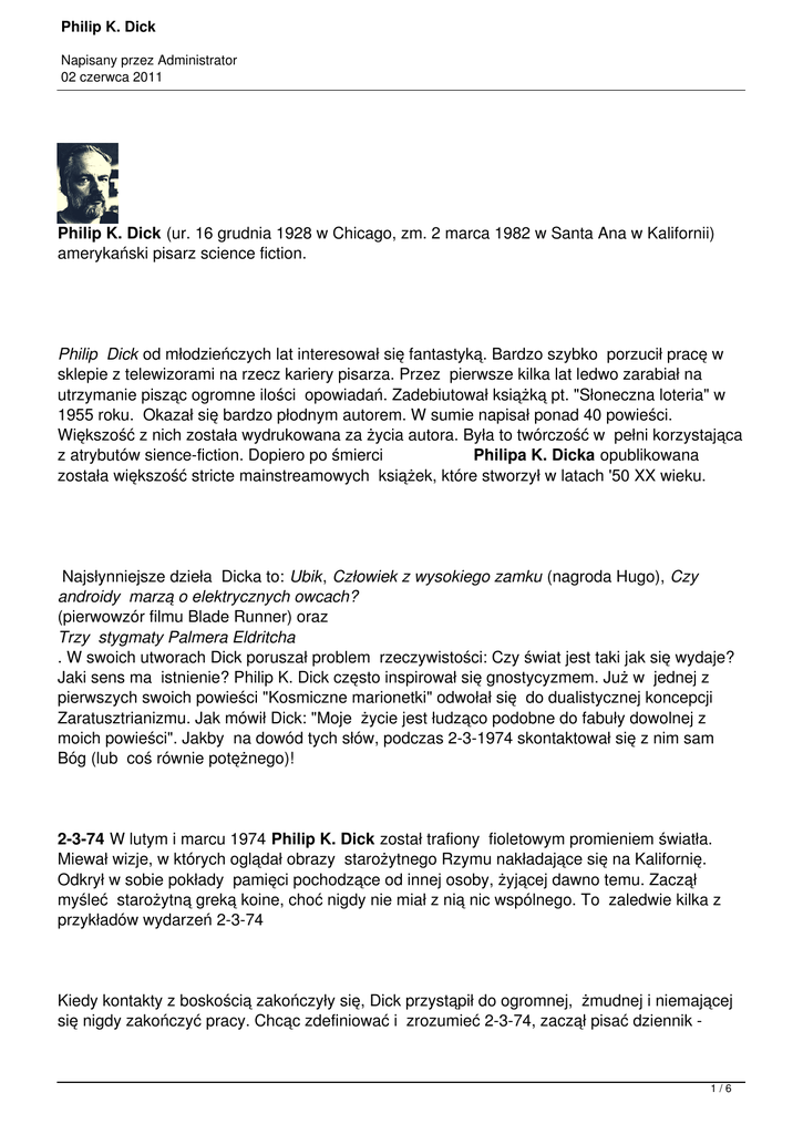 Philip K. Dick (ur. 16 grudnia 1928 w Chicago, zm. 2 marca 1982 w Santa Ana w Kalifornii)