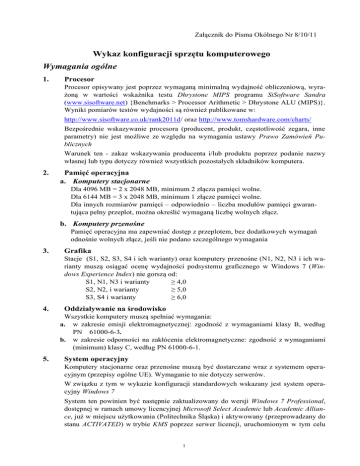 W związku z tym w wykazie konfiguracji standardowych wskazany jest system operacyjny Windows 7