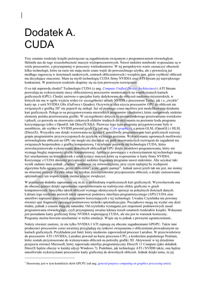 Lektura tego rozdziału pozwoli także opanować podstawy interfejsu programistycznego (API) CUDA oraz