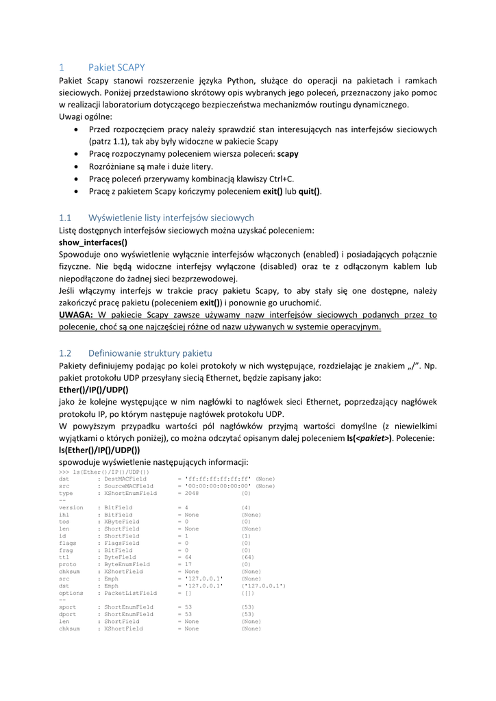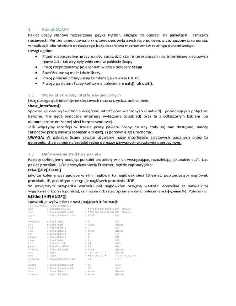 (patrz 1.1), tak aby były widoczne w pakiecie Scapy