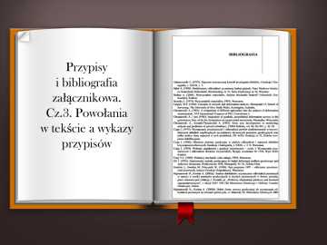 Przypisy i bibliografia załącznikowa. Cz.3. Powołania w tekście a wykazy przypisów 1 Powiązanie przypisów z tekstem Przypis, zamieszczony w dolnej części strony (przypis dolny) lub za tekstem zasadniczym (przypis końcowy), powiązany jest z tekstem głównym za pomocą odsyłacza. Można wyróżnić: – odsyłacz numeryczny w postaci liczby (cyfry arabskie) umieszczonej w nawiasie kwadratowym lub okrągłym lub w indeksie górnym, – odsyłacz w formie nazwy i daty (tzw. odsyłacz harwardzki), składa się z nazwiska autora lub początku tytułu oraz daty publikacji podanych w nawiasie okrągłym lub kwadratowym 2 Systemy powołań Systemy powołań „autor-data” (harwardzki) przypisy w jednym ciągu system numeryczny 3 „autor-data” (system harwardzki) Odsyłacz w tekście poprzez podanie nazwiska autora i daty wydania jego pracy TEKST GŁÓWNY Z POWOŁANIAMI […] Każdy z poziomów określany jest przez deskryptory, które charakteryzują w kategoriach ogólnych wymagane dla danego poziomu efekty uczenia się (Sławiński i in. 2013). Nowelizacja ustawy o szkolnictwie wyższym, wprowadziła Krajowe ramy Kwalifikacji do polskiego systemu edukacji wyższej. Nowe regulacje obowiązywały od dnia 1 października 2012 roku (Ustawa z 18 marca 2011). Studenci, którzy rozpoczęli studia w roku akademickim 2012/2013 powinni realizować programy nauczania opracowane z uwzględnieniem Krajowych Ram Kwalifikacji (KRK). Uczelnie wyższe powinny umożliwić swoim studentom nabycie tego rodzaju umiejętności oraz ich dalsze rozwijanie w ramach programów kształcenia na uczelni. W dokumencie w sposób szczegółowy opisano pojęcie kompetencji informacyjnych oraz ich podział w zależności od poziomu nauczania. Podobne rozumienie tego terminu przedstawiano już wcześniej w literaturze fachowej (American Library Association 1989; Baro, Zuokemefa 2011; Dorner, Gorman, Gaston 2012). […] Odsyłacz w systemie harwardzkim zawiera bardzo skróconą informację bibliograficzną, ujętą w nawiasach okrągłych () lub nawiasach kwadratowych [] , tj.: nazwisko autora, ewentualnie: współautorów, redaktora lub pierwsze słowa tytułu źródła (w przypadku prac zbiorowych bez podanego redaktora), rok wydania publikacji, ewentualnie numer strony lub numery stron, na które powołuje się autor pracy po nazwisku można postawić przecinek lub pozostawić tylko pojedynczy odstęp po roku, a przed numerem strony przywoływanego dokumentu można postawić przecinek lub dwukropek 4 „autor-data” (system harwardzki) TEKST GŁÓWNY Z POWOŁANIAMI […] Każdy z poziomów określany jest przez deskryptory, które charakteryzują w kategoriach ogólnych wymagane dla danego poziomu efekty uczenia się (Sławiński i in. 2013). Nowelizacja ustawy o szkolnictwie wyższym, wprowadziła Krajowe ramy Kwalifikacji do polskiego systemu edukacji wyższej. Nowe regulacje obowiązywały od dnia 1 października 2012 roku (Ustawa z 18 marca 2011). Studenci, którzy rozpoczęli studia w roku akademickim 2012/2013 powinni realizować programy nauczania opracowane z uwzględnieniem Krajowych Ram Kwalifikacji (KRK). Uczelnie wyższe powinny umożliwić swoim studentom nabycie tego rodzaju umiejętności oraz ich dalsze rozwijanie w ramach programów kształcenia na uczelni. W dokumencie w sposób szczegółowy opisano pojęcie kompetencji informacyjnych oraz ich podział w zależności od poziomu nauczania. Podobne rozumienie tego terminu przedstawiano już wcześniej w literaturze fachowej (American Library Association 1989; Baro, Zuokemefa 2011; Dorner, Gorman, Gaston 2012). […] Wykaz przypisów=Bibliografia załącznikowa • na końcu pracy • układ alfabetyczny wg nazwisk twórców, PRZYPISY/BIBLIOGRAFIA a następnie wg roku wydania • pełny opis … American Library Association, 1989, Presidential Committee on Information Literacy, Final Report, Chicago: American Library Association. Baro, E., Zuokemefa, T., 2011, Information literacy programmes in Nigeria: a survey of 36 university libraries, New Library World, Vol. 112, Nr. 11/12, pp. 549 – 565. Dorner, D., Gorman, G.E., Gaston, N. M., (2012), Developing Contextual Perceptions of Information Literacy and Information Literacy Education in the Asian Region, W: Spink, S. A., Singh, D. (red.), Library and Information Science Trends and Research: Asia-Oceania, Volume 2, Emerald Group Publishing Limited, s. 151 – 172. … Marciniak Z. (red.), (2013). Raport samopotwierdzenia krajowych ram kwalifikacji dla szkolnictwa wyższego. Warszawa, Instytut Badań Edukacyjnych, 121 s. ISBN 978-83-61693-20-8 Sławiński S. i in., (2013). Raport referencyjny. Odniesienie polskiej ramy kwalifikacji na rzecz uczenia się przez całe życie do europejskiej ramy kwalifikacji. Warszawa, Instytut Badań Edukacyjnych, 128 s 5 „autor-data” (system harwardzki) Jeżeli odwołujemy się do kilku prac tego samego autora wydanych w tym samym roku, po dacie publikacji dodaje się małą literę „a”, „b”, „c”, „d”, itd. W bibliografii załącznikowej należy zamieścić odpowiednie oznaczenie przy latach. TEKST Z POWOŁANIAMI .…………….. (Biń 1988a, s. 769). ……. …………………………….. (Biń 1988b, s. 379). ……. ……………………………….. (Biń 1988a, 1988b) ……………………… PRZYPISY/BIBLIOGRAFIA … Biń A.K., Irmiya A.,1988a, Incipient fluidization of polydisperse beds, Chemical and Process Engineering, 4, 769-786. Biń A.K., 1988b, Minimum air entrainment velocity of vertical plunging liquid jets, Chemical Engineering Science, 43, (2), 379-389. 6 „autor-data” (system harwardzki) Jeżeli kilka wykorzystywanych w pracy dokumentów ma autorów o tym samym nazwisku i ten sam rok wydania, wówczas rozróżnia się je za pomocą pierwszych liter imion autorów np. TEKST Z POWOŁANIAMI …….(Nowak A. 2003; Nowak W. 2003)…… 7 „autor-data” (system harwardzki) Jeżeli nazwisko autora pojawia się w