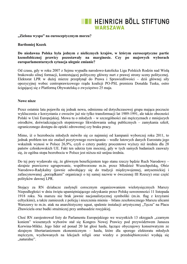 „Zielona wyspa” na eurosceptycznym morzu? Bartłomiej Kozek Do