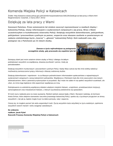 Komenda Miejska Policji w Katowicach Dziękuję za lata pracy z Wami