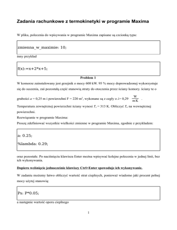 Zadania rachunkowe z termokinetyki w programie Maxima