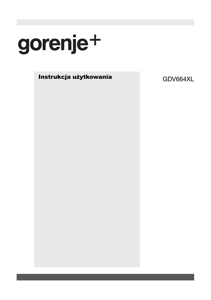 Instrukcja użytkowania GDV664XL SPIS TREŚCI PANEL PRZEDNI 2 ROZWIĄZYWANIE PROBLEMÓW 22 INSTRUKCJE BEZPIECZEŃSTWA 3 PRZED PIERWSZYM UŻYCIEM 4 INFORMACJE DLA INSTYTUCJI TESTUJĄCYCH 27 ŁADOWANIE ZMYWARKI 6 DANE TECHNICZNE 29 10 MONTAŻ 30 USTAWIENIA 15 SERWIS 32 PIELĘGNACJA I CZYSZCZENIE 19 TABELA PROGRAMÓW 33 NOTATKI 34 UŻYTKOWANIE ZMYWARKI PANEL PRZEDNI 7 8 1 2 3 4 5 6 9 10 11 12 13 14 1 Tryb włączenia/czuwania (On/Left-on) 6 TAB (detergent typu 3-w-1/wszystko-w-jednym) 10 Długie suszenie 2 Programator 7 Wskaźnik soli 3 Symbol programu 8 12 Wybór czasu (dla programu Program czas ) 4 Wyświetlacz 5 Wskaźnik środka do płukania Zabezpieczenie przed dziećmi (blokada przycisków) 9 Wysoka temperatura 11 Opóźniony start 13 Ekspres 14 Start/Stop Panel zawiera przyciski dotykowe z dźwiękową sygnalizacją dotknięcia (patrz rozdział Ustawienia). UWAGA! • Po dwóch minutach od ostatniego naciśnięcia przycisku tryb podświetlenia panelu zmienia się na energooszczędny. Aby przywrócić panel do normalnego stanu należy zamknąć i otworzyć drzwi lub nacisnąć przycisk włączenia/czuwania. 2 INSTRUKCJE BEZPIECZEŃSTWA INFORMACJE OGÓLNE • Przeczytać instrukcję użytkowania i umieścić ją w bezpiecznym miejscu. • Nie wolno używać zmywarki do innych celów niż wskazane w niniejszej instrukcji użytkowania. • Na drzwiach zmywarki ani w koszach zmywarki nie wolno umieszczać rzeczy innych niż naczynia. • Nie wolno zostawiać otwartych drzwi zmywarki, ponieważ stwarza to ryzyko potknięcia. • Należy stosować tylko detergent do zmywarek! • Urządzenie może być obsługiwane przez dzieci w wieku 8 lat i starsze oraz przez osoby z niepełnosprawnością fizyczną, umysłową, utratą pamięci lub nie posiadające doświadczenia ani wiedzy. Osoby takie muszą być nadzorowane w czasie obsługi urządzenia lub poinstruowane w zakresie jego obsługi oraz powiązanych zagrożeń. Urządzenie nie może być czyszczone przez dzieci bez nadzoru. • Nie wolno pozwalać dzieciom na zabawę zmywarką. • Uszkodzony przewód zasilający może być wymieniony tylko przez wykwalifikowanego elektryka. • Zmywarka przeznaczona jest do użytku domowego, oraz do innych podobnych zastosowań, np: - w kuchniach dla pracowników sklepów, biur i innych miejsc pracy; - na fermach; - jako wyposażenie pokojów w hotelach, motelach i innych miejscach zakwaterowania; - w pensjonatach. • Do zmywarki nie wolno wkładać naczyń z pozostałościami rozpuszczalnika, ponieważ grozi to eksplozją. W zmywarce nie wolno zmywać też talerzy zabrudzonych popiołem, woskiem lub środkami smarnymi. OSTRZEŻENIE! Noże i inne ostro zakończone przedmioty należy układać ostrą stroną w dół w koszu na sztućce lub poziomo w innych koszach. MONTAŻ Patrz sekcja Montaż. BEZPIECZEŃSTWO DZIECI • Należy zawsze zamknąć drzwi i włączyć program bezzwłocznie po dodaniu detergentu. • Nie pozwalać dzieciom zbliżać się do zmywarki, gdy drzwi są otwarte. Wewnątrz mogą znajdować się pozostałości detergentu. • Nie wolno pozwalać dzieciom na obsługę zmywarki lub zabawę zmywarką. Należy zachować szczególną czujność, gdy drzwi są otwarte. OSTRZEŻENIE! Nie wolno pozostawiać dzieci bez opieki – detergent do zmywarek jest żrący! Detergenty i środki do płukania powinny być przechowywane w miejscach niedostępnych dla dzieci! W przypadku połknięcia detergentu do zmywarek należy natychmiast wypić szklankę lub dwie szklanki mleka lub wody. Nie wywoływać wymiotów. Skontaktować się z lekarzem! Jeżeli detergent dostanie się do oczu, należy je przepłukiwać (co najmniej przez 15 minut) dużą ilością wody. Włączenie zabezpieczenia przed dziećmi (blokada przycisków) Włączenie zabezpieczenia przed dziećmi (blokady przycisków) zapobiega możliwości uruchomienia zmywarki przez dzieci (patrz punkt Ustawienia). PRZECHOWYWANIE W ZIMIE/TRANSPORT • Zmywarkę należy przechowywać w miejscach, w których temperatura nie spada poniżej zera. • Należy unikać transportu na duże odległości w bardzo niskiej temperaturze. • Zmywarkę należy transportować pionowo lub ułożoną na tylnej ściance. 3 PRZED PIERWSZYM UŻYCIEM ZASADA DZIAŁANIA ZABEZPIECZENIA PRZED PRZELANIEM Zabezpieczenie przed przelaniem opróżnia zmywarkę i odcina zasilanie wodą, gdy jej poziom podniesie się powyżej wartości normalnej. W przypadku uruchomienia zabezpieczenia przed przelaniem należy odciąć dopływ wody i wezwać serwis. CZYSZCZENIE Krawędź otworu drzwiowego powinna być czyszczona tylko za pomocą lekko wilgotnej ściereczki. Nie wolno rozpylać wody na krawędź drzwi! Wilgoć może przedostać się do zamka, w którym znajdują się układy elektryczne. OPAKOWANIE SZANOWNY GORENJE+ KLIENCIE! Jesteśmy przekonani, że Twoja nowa zmywarka będzie Ci służyć przez wiele lat. Jest ona urządzeniem wielofunkcyjnym. Aby jak najlepiej te funkcje wykorzystać, zalecamy zapoznanie się z instrukcją użytkowania przed uruchomieniem maszyny. Instrukcja użytkowania zawiera także informacje na temat działań mających na celu ochronę środowiska. IDENTYFIKATOR PROGRAMÓW Do niektórych zmywarek dołączono identyfikatory programów w różnych językach. Identyfikator programów w preferowanym języku należy nakleić na górnej powierzchni drzwi. Odpady należy segregować zgodnie z lokalnymi przepisami. UTYLIZACJA • Po zakończeniu eksploatacji zmywarki, gdy ma ona zostać poddana utylizacji, należy niezwłocznie uniemożliwić jej uruchomienie. Wyciągnąć kabel zasilający i uciąć go tak krótko, jak to możliwe. • Zmywarka została wyprodukowana i oznaczona jako produkt poddawany odzyskowi. • Informacje na temat odpowiedniego miejsca i sposobu przekazania zmywarki do odzysku uzyskać można u lokalnych władz ZMIĘKCZACZ WODY Zmywarka pracuje najskuteczniej z miękką wodą (woda z niewielką ilością minerałów). Twarda woda pozos