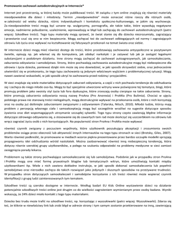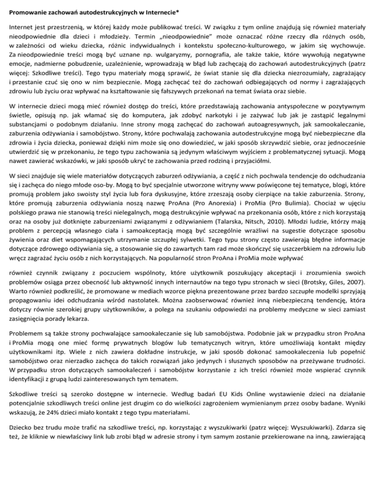 Promowanie zachowań autodestrukcyjnych w Internecie* Internet