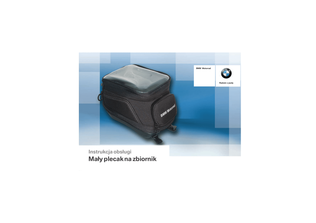 BMW Motorrad Radość z jazdy Instrukcja obsługi Mały plecak na zbiornik Wskazówki ogólne z Wprowadzenie Skróty i symbole Mały plecak na zbiornik BMW Motorrad to idealny towarzysz wycieczek motocyklowych. Firma BMW Motorrad jest gwarantem wysokiej jakości – uwidacznia się to w eleganckiej stylistyce i perfekcyjnym wykonaniu. Oznacza wskazówki ostrzegawcze, których należy bezwzględnie przestrzegać ze względu na bezpieczeństwo własne, bezpieczeństwo innych oraz aby uchronić swój motocykl przed uszkodzeniem. Podczas poniższych prac motor postawiony niestabilnie może się przewrócić. Uważać, aby motor stał stabilnie. Inne środki czyszczące mogą atakować powierzch- nie. Mały plecak na zbiornik może być w razie potrzeby czyszczony wodą lub łagodnym roztworem mydła i wilgotną ściereczką. Szczególne wskazówki mające na celu ułatwienie pracy przy obsłudze, kontroli i regulacji oraz czynnościach konserwacyjnych. Oznacza koniec wskazówki. Instrukcja wykonywania czynności. Wynik czynności. Odsyłacz do strony z dokładniejszymi informacjami. Oznacza koniec informacji dotyczącej akcesoriów lub wyposażenia. Moment dociągający. Dane techniczne. Spis treści 1 Widoki elementów . . . . . . . 2 Zakres dostawy . . . . . . . . . . . . . . 2 Mały plecak na zbiornik . . . . . . 3 2 Montaż . . . . . . . . . . . . . . . . . . . . 4 Montaż mocowań . . . . . . . . . . . . 4 3 Sposób użytkowania . . . . 7 Mały plecak na zbiornik - obsługa . . . . . . . . . . . . . . . . . . . . . . . . . 7 4 Dane techniczne . . . . . . . . 10 Dane techniczne . . . . . . . . . . . . 10 06.2014, 1. wydanie, 17 1 2 Zakres dostawy 1 2 Widoki elementów 3 4 z Mały plecak na zbiornik Mocowanie torby na zbiornik paliwa z przodu Mocowanie z tyłu Pasek na ramię 1 2 3 4 5 6 7 Kieszeń główna Torba wewnętrzna Wytrzymała, przezroczysta folia w pokrywie ze znajdującym się pod nią schowkiem (w znacznym stopniu wodoodpornym) np. na odtwarzacz mp3, nawigację lub smartfon Torba zewnętrzna Przepust przewodu Uchwyt do przenoszenia Zwiększenie pojemności 1 3 Widoki elementów Mały plecak na zbiornik z 2 4 Montaż mocowań Demontaż siedzenia pasażera Zdemontować siedzenie kierowcy Montaż przednich mocowań Montaż Ustawić motocykl na równym i stabilnym podłożu. z Podpierając siedzenie pasażera 2 w przedniej części nacisnąć je w dół, obracając przy tym kluczyk 1 w zamku siedzenia w lewo i przytrzymując go. Podnieść siedzenie pasażera 2 z przodu i puścić kluczyk. Zdjąć siedzenie kierowcy 2 i położyć obiciem w dół na czystym podłożu. Podnieść siedzenie kierowcy i zdjąć z przednich mocowań 1. Zdjąć siedzenie kierowcy i położyć obiciem w dół na czystym podłożu. Odpiąć pasek 1. Odpiąć języki zaczepów 2 i 3. Ściągnąć język zaczepu 2 z paska 1. Montaż tylnych mocowań 2 Przyłożyć mocowanie z przodu 4 do środkowego elementu osłony 5. Przeciągnąć języki zaczepu 2 i 3 pod rurami ramy 6 do góry. Przeciągnąć pasek 1 przez otwór w języku zaczepu 3 i zapiąć język zaczepu 3. Zapiąć pasek 1. Zapiąć język zaczepu 2. Odpiąć języki zaczepów 1. Odpiąć języki 2 tylnego mocowania 3 i przełożyć przez otwory 4 mocowania siedzenia kierowcy 5 a następnie zapiąć 2. Zapiąć języki zaczepów 1. Montaż 5 z Zdjąć folię ochronną z taśmy z flauszu. Ustawić taśmę z flauszu 7 centralnie na oznaczeniu 8 i docisnąć mocno przez chwilę. 2 Montaż 6 z Przyłożyć tylne mocowanie 3 centralnie odpowiednio do konturu środkowej części obudowy 6. Zaznaczyć pozycję taśmy z flauszu 7 za pomocą ołówka na środkowym elemencie osłony 6, nie uszkadzając przy tym lakieru. Wyczyścić oznaczoną strefę na taśmę z flauszu 7. Punkty klejenia muszą być suche, oczyszczone z pyłu i smarów. Zdjąć taśmę flauszu 7 z tylnego mocowania 3. Montaż siedzenia pasażera Montaż siedzenia kierowcy Wcisnąć siedzenie kierowcy do oporu w przednie mocowania 1 a następnie docisnąć z tyłu. Najpierw wsunąć siedzenie pasażera 1 w mocowania w tylnej części. Nacisnąć mocno siedzenie pasażera 1 z przodu w dół. Siedzenie pasażera powinno zaskoczyć z trzaskiem w blokadę. Mocowanie małego plecaka na zbiornik Pył i brud mogą uszkodzić powłokę lakieru. Górną część środkowej części osłony i spód małego plecaka na zbiornik paliwa należy dokładnie wyczyścić. W razie dłuższego użytkowania małego plecaka na zbiornik należy regularnie czyścić powierzchnie stykowe. Założyć mały plecak na zbiornik 1 na środkowy element osłony 2. Połączyć zatrzaski 3 i 4. 3 7 Sposób użytkowania Mały plecak na zbiornik - obsługa z Zwiększanie objętości 3 Sposób użytkowania 8 z Doczepianie, odczepianie i regulowanie paska na ramię Połączyć zatrzaski 1 i 2. Mały plecak na zbiornik może się odczepić. Pasy należy naprężyć w taki sposób, aby mały plecak na zbiornik paliwa bezpiecznie i mocno przylegał do środkowej części osłony. Zamocować mały plecak na zbiornik, naprężając pasy 3. Nadmierną długość pasów 3 można włożyć u góry w szlufki 4. Dzięki otwarciu suwaka 1 można zwiększyć objętość. Doczepić pasek na ramię 1 do języczków mocujących strzałki. Długość paska na ramię 1 regulować przesuwaniem klamry 2. Przed rozpoczęciem jazdy odczepić pasek na ramię 1 od języczków mocujących strzałki i zdjąć. Zamykanie torby wewnętrznej 3 Napiąć taśmę 1 i zwinąć 3x. Aby ułatwić załadunek małego plecaka na zbiornik paliwa, zwinąć wewnętrzny worek 1 i przypiąć sznurkami 2. Jeżeli torba wewnętrzna jest przypięta z boku, ochrona przed przesiąkaniem wody nie jest zapewniona. Połączyć zatrzaski 1. Sposób użytkowania 9 z 4 Dane techniczne 10 z Dane techniczne Powłoka Poliuretan, 100 % Materiał wierzchni Poliester, 80 % Poliuretan, 20 % Podszewka Poliamid, 100 % Ładowność małego plecaka na zbiornik maks. 5 kg Pojemność małe