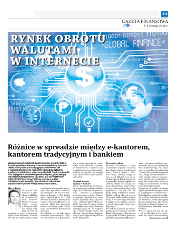 39 GAZETA FINANSOWA 5–11 lutego 2016 r. RYNEK OBROTU WALUTAMI W INTERNECIE Różnice w spreadzie między e-kantorem, kantorem tradycyjnym i bankiem Według naszych ostatnich badań (z końca stycznia 2016 r.) średnie spready w kantorach internetowych były znacznie niższe niż w punktach tradycyjnych, nie mówiąc już o tabelach bankowych. Przeciętny spread dla czterech wiodących walut (euro, dolar amerykański, frank szwajcarski, funt brytyjski) w bankach wynosił 6,96 proc., podczas gdy w kantorach tradycyjnych 1,63 proc., a w internetowych zaledwie 0,67 proc. Innymi słowy: wymiana walut w Internecie jest ponad 2 razy tańsza niż w kantorze stacjonarnym i ponad 10 razy tańsza niż w banku. Marcin Borek Te znaczne rozbieżności w spreadach przekładają się na realne korzyści klientów. Rynek wymiany walut online w bieżącym roku ma szansę osiągnąć 40 mld zł, wymiana tej sumy w Internecie będzie zatem kosztować klientów 135 mln zł. Gdyby całość została wymieniona w kantorach tradycyjnych, koszt wyniósłby 326 mln zł, ale wymieniając 40 mld zł w bankach, po kursach z tabel bankowych zapłacilibyśmy aż 1 mld 391 mln zł. Różnice między tymi sumami to korzyści klientów z fenomenu jakim jest powstanie branży e-wymiany walut i działania mechanizmu konkurencji rynkowej. To pokazuje też, że cały sektor kantorów internetowych, dając tak wiele klientom i gospodarce, jest w stanie utrzymać się za niewiele ponad 100 mln zł rocznie (w rzeczywistości e-kantory część transakcji promocyjnych przeprowadzają bez spreadu, nie osiągają więc nawet całości marży wyliczonej wyżej). Skąd tak wysokie spready w bankach Banki, przynajmniej książkowo, są instytucjami zaufania publicznego. Ich stabilność, bezpieczeństwo i pewność są ewidentnie wartością samą w sobie. Dlatego też państwa, regulatorzy, no i ostatecznie podatnicy chcą za tę pewność i stabilność płacić. Płacą, aby banki zbyt duże, by upaść jednak nie upadały, więc tworzą fundusze zabezpieczające itd. To wszystko ma wymiar realnego kosztu, ale i bardziej ukrytej daniny, jaką płacimy w postaci ograniczonych stresorów dla banków. Na czym to polega Rynkiem finansowym i jego uczestnikami rządziły od zawsze dwie skrajne emocje: strach (przed stratą, bankructwem) i chciwość zysku. Problem polega na tym, że od jakiegoś czasu ta naturalna higiena dwóch emocji jest w przypadku banków zupełnie zachwiana. Banki, ich zarządy, traderzy, akcjonariusze chcą zarabiać więcej, zatem podejmują ryzyko gospodarcze. I to jest OK, tak działa każdy komercyjny biznes. Problem polega tylko na tym, że od kryzysu 2008 r. banki czują pod skórą, że w razie czego ktoś (my) wyciągnie pomocną dłoń i uchroni je przed najgorszym. Ergo: ryzykują więcej. Ale większa skłonność do nieuzasadnionego ryzyka to nie wszystko. Banki, oprócz tego że kosztują nas w przypadku krachów, prowadzą generalnie działalność reglamento- waną – nie można tak łatwo założyć banku jak np. warzywniaka czy biura rachunkowego. Nie działa więc tu prawdziwa konkurencja, a bez niej nie ma konkurencyjnych cen. Dlatego też bank może bez żenady wyciągać rękę po 7-procentowy spread od przedsiębiorcy, który nie zarabia takiej marży na będącym przedmiotem wymiany kontrakcie eksportowym. Można się nie godzić na obecne reguły rynków finansowych, wielu w razie kłopotów wolałoby umożliwiać bankom ogłoszenie upadłości z całymi konsekwencjami dla ich klientów. Choćby dla higieny biznesu bankowego i jako impuls do myślenia klientów, którzy bardziej ostrożniej lokowaliby swoje fundusze. Póki co jednak jest tak jak jest, i coś, co dla jednych jest problemem, dla innych stało się szansą. dokończenie na str. 40 40 RYNEK OBROTU WALUTAMI W INTERNECIE GAZETA FINANSOWA 5–11 lutego 2016 r. dokończenie ze str. 39 Zamiast narzekać na wysokie koszty wymiany w bankach, woleli po prostu zaspokoić rynkową potrzebę na tańsze usługi. Tak powstały kantory internetowe. Przewaga cenowa wobec banków i większa wygoda w porównaniu z tradycyjnymi kantorami Kiedy w latach 2009-2010 r. powstawały pierwsze kantory i platformy internetowej wymiany walut ich twórcy robili biznes inspirowany własną, konkretną potrzebą – nie chcieli aż tyle płacić w bankach, a z różnych względów kantory stacjonarne nie były rozwiązaniem. Uznali też, że nie są jedynymi z tym problemem i postanowili zbudować poważne, całkiem duże biznesy. Oczywiście wielkim katalizatorem dla branży była ustawa antyspre- adowa i sam ogromny rynek kredytów walutowych w Polsce. Bez nich nie byłoby tak szybko rosnącego i dużego sektora wymiany walut online. Ale rozwój międzynarodowych serwisów potwierdza, że potrzeba tańszych niż bankowe usług wymiany walut jest uniwersalna, a i trend przenoszenia się ze wszystkim do sieci również jest nie do zatrzymania. Zostawiając na chwilę banki, kantory internetowe mają też liczne przewagi nad kantorami tradycyjnymi. Mimo że kantory stacjonarne są wyraźniej tańsze od banków, co wynika z większej konkurencji, efektywniejszego działania, trudno im przebić ofertę internetową. W zasadzie poza sporadycznymi, wyjątkowymi przypadkami (małe kwoty, specyficzne waluty, transakcje w święta) wy- BIZNES RAPORT miana online będzie zawsze tańsza i bezpieczniejsza (nie ma ryzyka transportu gotówki, pomyłki kasjera) od wymiany w „realu”. E-kantor – nieograniczone możliwości Kantor internetowy może mieć z jednej strony niższe koszty (brak fizycznej obecności, mniejsze zatrudnienie na jednostkę transakcji), a z drugiej nie jest ograniczony w przychodach. Kantor tradycyjny w małej miejscowości będzie zawsze ograniczony fizyczną liczbą nabywców w danym miejscu. Ten sam kantor działając w sieci, ma taki sam „niebieski ocean” do łowienia jak kantor działający przez spółkę zarejestrowaną w Warszawi