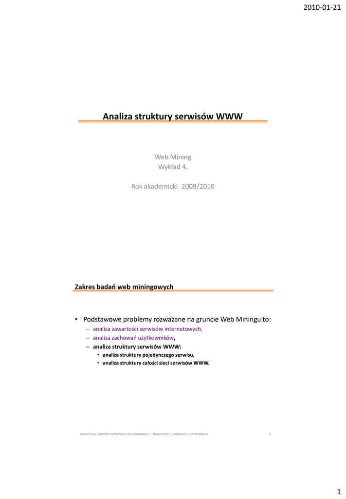 Analiza struktury serwisów WWW - Uniwersytet Ekonomiczny w
