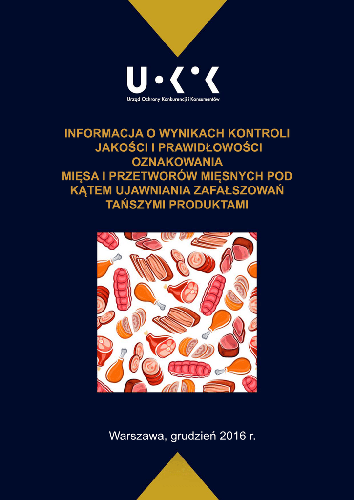 I NFORMACJAO WYNI KACHKONTROLI JAKOŚCIIPRAWI DŁOWOŚCI OZNAKOWANI A MI ĘSAIPRZETWORÓW MI ĘSNYCHPOD KĄTEM UJAWNI ANI AZAFAŁSZOWAŃ TAŃSZYMIPRODUKTAMI War s z awa,gr udz i eń2016r . DIH-703- 13/16/JS Warszawa, 14.12.2016 r. INFORMACJA O WYNIKACH KONTROLI JAKOŚCI I PRAWIDŁOWOŚCI OZNAKOWANIA MIĘSA I PRZETWORÓW MIĘSNYCH POD KĄTEM UJAWNIANIA ZAFAŁSZOWAŃ TAŃSZYMI PRODUKTAMI 1. Realizując ustawowy obowiązek ochrony interesów konsumentów, Inspekcja Handlowa w pierwszym kwartale 2016 roku przeprowadziła w placówkach handlu detalicznego na terenie 16 województw kontrolę jakości i prawidłowości oznakowania mięsa i przetworów mięsnych. Zakres kontroli obejmował zbadanie jakości handlowej produktów w tym sprawdzenie prawidłowości ich oznakowania. Kontrolą objęto łącznie 165 placówek, w tym: 100 sklepów należących do sieci handlowych, 14 hurtowni oraz 51 pozostałych sklepów. Różnego rodzaju nieprawidłowości stwierdzono w 83 placówkach (50,3 proc. skontrolowanych). 2. Ogółem skontrolowano 1.279 partii mięsa i przetworów mięsnych, w tym 157 partii świeżego mięsa (w tym mielonego) i 123 partie surowych wyrobów mięsnych (w tym np. surową białą kiełbasę) oraz 999 partii produktów mięsnych (w tym wędliny, konserwy, pasztety), tj.: 78 partii mięsa świeżego wieprzowego, 60 partii mięsa świeżego oprócz wieprzowiny (głównie mięso wołowe), 19 partii mięsa mieszanego z udziałem wieprzowiny (mięso mielone), 62 partii surowych wyrobów mięsnych wieprzowych (m.in. metka, surowa biała kiełbasa), 45 partii surowych wyrobów mięsnych bez udziału wieprzowiny, 16 partii surowych wyrobów mięsnych mieszanych z udziałem wieprzowiny, 716 partii produktów mięsnych wieprzowych (wędliny, konserwy, pasztety), 198 partii produktów mięsnych z udziałem wieprzowiny (wędliny, konserwy, pasztety), 83 partie produktów mięsnych bez udziału wieprzowiny (wędliny, konserwy, pasztety), 2 partie produktów mięsnych pochodzących z mięsa dzikich zwierząt. Różnego rodzaju zastrzeżenia wniesiono do 516 partii (40,3 proc.), w tym najwięcej (474 partie) ze względu na nieprzestrzeganie przepisów w zakresie znakowania. Informacja z kontroli jakości i prawidłowości oznakowania mięsa i przetworów mięsnych 3. Do badań w laboratoriach Urzędu Ochrony Konkurencji i Konsumentów pobrano próbki z 234 partii mięsa i przetworów mięsnych, które oceniono w stosunku do obowiązujących przepisów prawa oraz deklaracji zawartych w oznakowaniu tych produktów. Wyniki badań stanowiły podstawę do zakwestionowania 31 partii (13,2 proc.) w zakresie nieprzestrzegania wymagań wynikających z ogólnych przepisów prawa żywnościowego. Do nieprawidłowości stwierdzonych w zakresie jakości należały m.in.: obecność mięsa wieprzowego niezadeklarowanego w: parówkach drobiowych z cielęciną, hamburgerze wołowym i mięsie mielonym wołowym; niższa zawartość tłuszczu (wynik: 6,6%, deklaracja: 10%) oraz niższa wartość energetyczna (wynik: 139 kcal/100g, deklaracja: 166 kcal/100g) w konserwie z indyka w sosie własnym; niższa zawartość tłuszczu: w pasztecie z indyka (wynik: 6,6%, deklaracja: 14%); niższa zawartość mięsa cielęcego: w parówkach drobiowych z cielęciną (wynik: 1,8%, deklaracja: 4%), w kiełbasie wieprzowej z dodatkiem cielęciny (wynik: 2,5%, deklaracja: 7%); obecność fosforu dodanego w ilości 1.093 mg/kg oraz wołowiny niedeklarowanych w składzie w kiełbasie wieprzowej białej surowej; obecność fosforu dodanego w ilości 720 mg/kg niedeklarowanego w składzie surowcowym kiełbasy swojskiej wieprzowej czosnkowej; wyższa w stosunku do deklarowanej na opakowaniu zawartość tłuszczu w surowym wyrobie mięsnym „Tatar wołowy z dodaną wodą” (wynik: 5,0 g deklaracja: 1,9 g); obecność mięsa wołowego niedeklarowanego w składzie surowcowym: kiełbasy wiejskiej, kiełbasy głogowskiej, kiełbasy białej surowej, mięsa garmażeryjnego wieprzowego, mięsa wieprzowego mielonego; brak mięsa jelenia zadeklarowanego w składzie kiełbasy łowieckiej z dziczyzną; obecność mięsa drobiowego niedeklarowanego w składzie surowcowym: parówek Babuni (zawartość surowca drobiowego w ilości ok. 20%) oraz w kiełbasie wieprzowej śląskiej; wyższa w stosunku do deklarowanej na opakowaniu zawartość tłuszczu: w kiełbasie z cielęciną (wynik: 28,4 g deklaracja: 23,0 g), w kiełbasie białej wieprzowej (wynik: 25,5 g deklaracja: 20,0 g), w szynce z indyka (wynik: 10,8 g deklaracja: 7,0 g), w parówkach z kurcząt (wynik: 20,9 g deklaracja: 13,3 g) w szynce wieprzowej surowej suszonej (wynik: 17,5 g deklaracja: 12,5 g), w kiełbasie ze świniobicia wieprzowej (wynik: 30,0 g deklaracja: 24,0 g); brak obecności mięsa wołowego w kiełbasie wieprzowej z dodatkiem wołowiny oraz w konserwie z dodatkiem mięsa wołowego; wyższy stosunek kolagenu do białka mięsa w mięsie mielonym wieprzowo-wołowym (wynik: 21,6 % deklaracja poniżej: 15 %). 2 Informacja z kontroli jakości i prawidłowości oznakowania mięsa i przetworów mięsnych 4. W toku kontroli sprawdzono, czy były przestrzegane przepisy w zakresie znakowania szczególnie zawarte w unijnym rozporządzeniu 1169/20111 oraz rozporządzeniu Ministra Rolnictwa i Rozwoju Wsi2. Oznakowanie niezgodne z obowiązującymi przepisami stwierdzono w przypadku 474 partii (37,1 proc. ogółem ocenionych). Najczęściej wymagań w zakresie oznakowania nie spełniały przetwory mięsne bez opakowań (oferowane „luzem”) – 408 partii spośród 704 skontrolowanych (58 proc.). W miejscu sprzedaży mięsa i przetworów mięsnych luzem (bez opakowań) najczęściej stwierdzano: brak wykazu składników w tym substancji powodujących alergie lub reakcje nietolerancji; brak nazwy albo imienia i nazwiska producenta; brak nazwy środka spożywczego wymaganej przepisami, nieprawidłowa nazwa bądź niepełna nazwa wyrobu - najczęściej nie podawano rodzaju mięsa wchodz