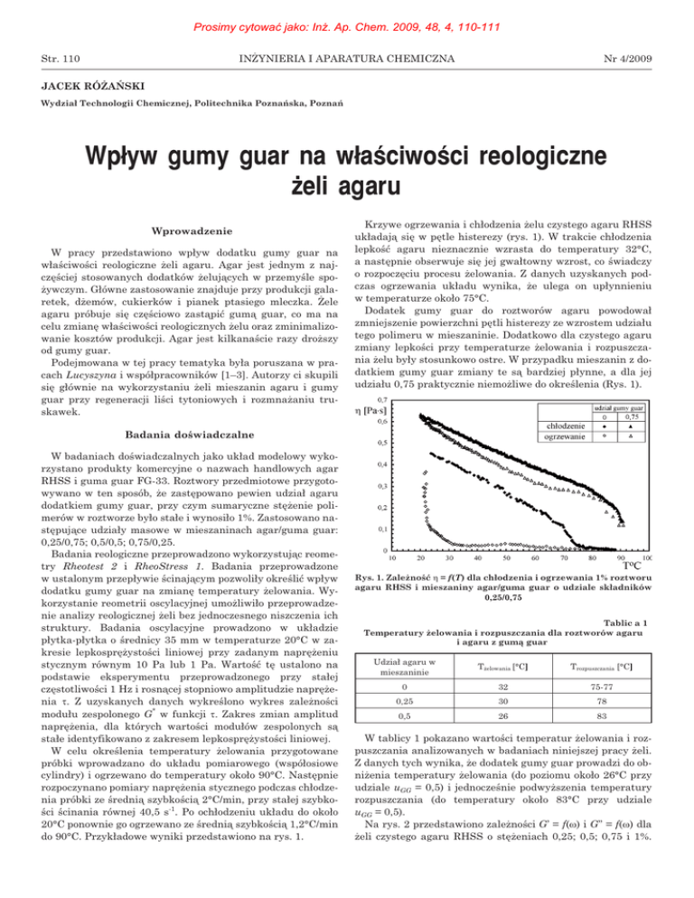 Wp³yw gumy guar na w³aœciwoœci reologiczne ¿eli agaru