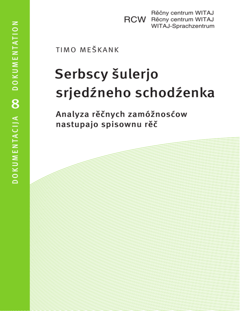 D O K U M E N TAT I O N DOKUMENTACIJA 8 RCW Rüìny centrum WITAJ Rücny centrum WITAJ WITAJ-Sprachzentrum TIMO MEŠKANK Serbscy šulerjo srjedźneho schodźenka Analyza rěčnych zamóžnosćow nastupajo spisownu rěč Serbscy šulerjo srjedźneho schodźenka Analyza rěčnych zamóžnosćow nastupajo spisownu rěč Serbscy šulerjo srjedźneho schodźenka Analyza rěčnych zamóžnosćow nastupajo spisownu rěč Timo Meškank Domowina – Rěčny centrum WITAJ 1. nakład © DOMOWINA – Zwjazk Łužiskich Serbow z. t., Rěčny centrum WITAJ, Budyšin 2010 Skazanske čisło: P-0/175/10-1 Skazanska adresa: Rěčny centrum WITAJ / WITAJ-Sprachzentrum Póstowe naměsto / Postplatz 3 02625 Budyšin / Bautzen tel.: 03591 550 400 faks: 03591 550 375 e-mail: [email protected] Redakcija: Manuela Smolina Wuhotowanje a sadźba: Serbska ćišćernja Budyšin t. z. w. r. Wobalka: RCW Ćišć: Serbska ćišćernja Budyšin t. z. w. r. Spěchowane wot Sakskeho statneho ministerstwa za socialne a wot Załožby za serbski lud, kotraž dóstawa lětnje přiražki Zwjazka, Swobodneho stata Sakska a Kraja Braniborska. Wobsah Zawod .......................................................................................... 7 Ćežišćo 1 preteritum ........................................................................ 10 Ćežišćo 2 refleksiwnej pronomenaj ....................................................... 37 Ćežišćo 3 aspekt . ............................................................................ 62 Ćežišćo 4 kongruenca ....................................................................... 82 Ćežišćo 5 kwantifikator . ................................................................... 90 Ćežišćo 6 pronomen . ....................................................................... 98 Ćežišćo 7 artikl . ............................................................................. 114 Ćežišćo 8 žiwosć a muskowosobowosć ................................................... 118 Ćežišćo 9 kazus a prepozicije .............................................................. 128 Ćežišćo 10 wuprajenska struktura . ....................................................... 146 Ćežišćo 11 to be or to let-werby ............................................................. 154 Ćežišćo 12 kalkowanje syntaktiskich a leksikaliskich wjazbow . .................... 164 Žórła .. ......................................................................................... 169 Přiłoha 1 wopyt serbskich srjedźnych šulow a gymnazija (protokole) . ............ 170 Přiłoha 2 nastawki centralnych olympiadow serbskeje rěče (wotpiski) ............. 176 5 Zawod Zaměr analyzy je, zwěsćić rěčne kmanosće šulerjow 6. lětnika. Wuchadźišćo za zwěsćenje rěčnych kmanosćow su žadanja wučbneho plana nastupajo serbšćinu w 5. a 6. lětniku. Wobkedźbować ma so při tym, kak so tute žadanja we wučbnych srědkach za wučbu serbšćiny „Naša maćeršćina“, „Zwučujemy a pisamy“ a „Čitanka“ zwoprawdźeja. Tute wučbne srědki wšak móža jenož zakładna pomoc za wuwučowanje być. Po naprašowanju w serbskich srjedźnych šulach w Budyšinje, Radworju, Worklecach a Ralbicach kaž tež na gymnaziju w Budyšinje dyrbjało so specifikować, hdźe so wučba w kotrym rozměrje přewjedźe. Měło so tohorunja wujasnić, w kotrych předmjetach nimo serbšćiny so serbska rěč jako wuwučowanska rěč wužiwa. Předmjet analyzy su nastawki šulerjow 6. lětnika z centralnych olympiadow serbskeje rěče. Tajke nastawki mamy z lět 1992 do 2009. Nastawki njejsu w Rěčnym centrumje WITAJ za wšitke lětniki zachowane, pobrachujetej lětnikaj 2001 a 2005. Organizatoriske podłožki olympiadow su wot lěta 2000 w RCW składowane, lětniki do 2000 pak su w archiwje Serbskeho šulskeho towarstwa. Wone měli so tohorunja wobkedźbować, zo by so přehlad wo rezultatach pisomnych wudźěłkow wudospołnił. Přewjedźenje analyzy je takle planowane: Za lětniki, hdźež předleža nastawki a dospołne pozadkowe informacije wo wobdźělnikach a rezultaće wubědźowanja, ma so šěsć nastawkow najlěpšich wobdźělnikow do kompjutera přepisać a na třoch runinach rěčneho systema – morfologija, syntaksa, leksika – analyzować. Dalše nastawki móža k tomu słužić, dobyty material wudospołnjeć. Měło so wosebje na to dźiwać, w kotrej měrje šulerjo bohatosć serbskeho rěčneho inwentara wobknježa a korektnje nałožuja. Indikatory za posudźowanje wobknježenja rěče su na mjenowanych runinach rěčneho systema sćěhowace: č. runina 1 morfologija tempus werba 2 3 transgresiw fazowe werby 4 dual přepytowanje formy preterituma a futura, rozdźělne tworjenje po aspekće werba tworjenje a nałožowanje wone steja z imperfektiwnymi werbami nałožowanje pola werba, substantiwa a adjektiwa 7 č. runina přepytowanje 5 morfologija kazus substantiwa a adjektiwa genitiw a wokatiw 6 kwantifikatory kongruenca ze substantiwom 7 prepozicije wliw wobchadneje serbšćiny, ale tež němčiny 8 syntaksa wuprajenska struktura 9 10 krute słowne wjazby atribuizowanje 11 refleksiwne poćahi 12 13 14 muskowosobowosć konektory leksika inwentar werbow 15 to be or to let-werby 16 charakter werbalneho jednanja 17 18 19 20 artikl posesiwy partikle a modalne słowa swójske mjena korektna realizacija sadowych čłonow, funkciske werby serbske rěčne wobroty, požčonki z němčiny kongruenca a roztwar sadowych čłonow wužiwanje refleksiwneju pronomenow sebje a swój formy a kongruenca roztwar zwiskow mjez sadami bohatosć rěčneho wuraza kontekstej wotpowědowace trjebanje, na př. wostać – wostajić rozdźěl mjez werbalnymi porikami typa sypnyć – sypać / skočić – skakać / sedźeć – sydać / hić – chodźić wliw němčiny tworjenje a wužiwanje šěrokosć nałožowanja wuwědomjenje rozdźěla mjez mjenami a pomjenowanjemi, kiž so tež w prawopisu