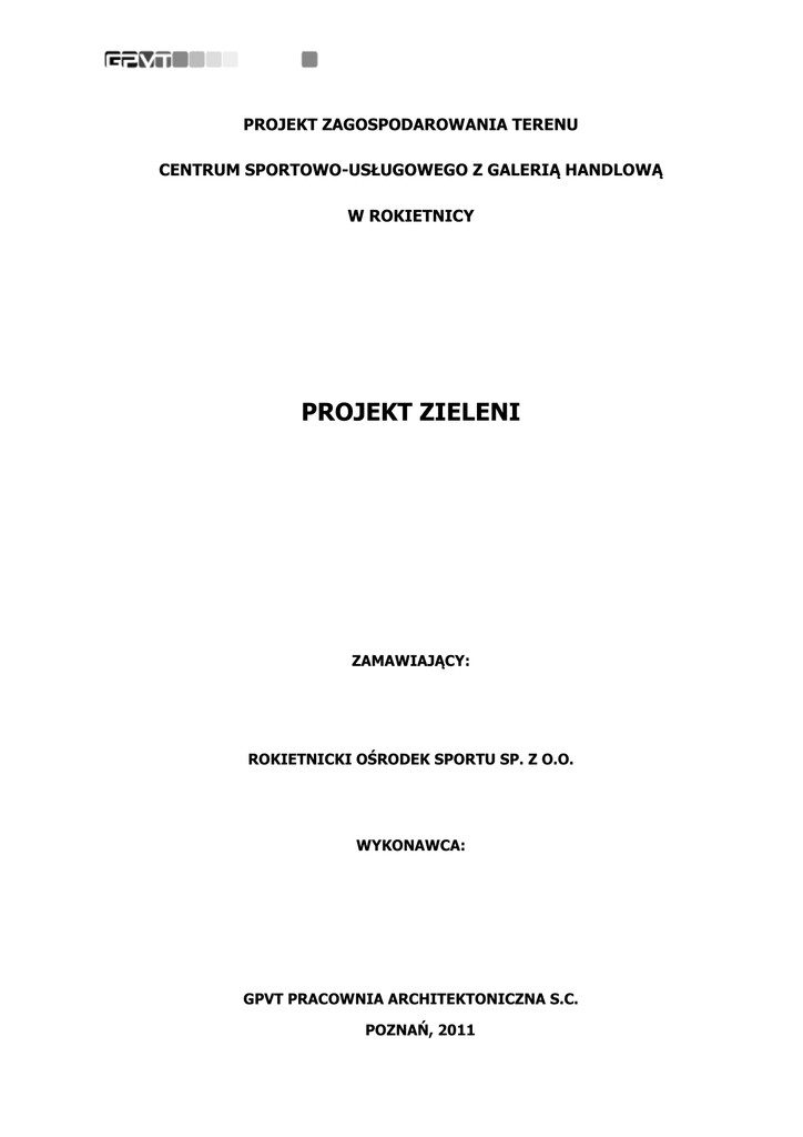 PROJEKT ZAGOSPODAROWANIA TERENU CENTRUM SPORTOWO-USŁUGOWEGO Z GALERIĄ HANDLOWĄ W ROKIETNICY PROJEKT ZIELENI ZAMAWIAJĄCY: ROKIETNICKI OŚRODEK SPORTU SP. Z O.O. WYKONAWCA: GPVT PRACOWNIA ARCHITEKTONICZNA S.C. POZNAŃ, 2011 PROJEKT ZAGOSPODAROWANIA TERENU WOKÓŁ CENTRUM SPORTOWO-USŁUGOWEGO Z GALERIĄ HANDLOWĄ W ROKIENICY SPIS TREŚCI OPIS PROJEKTU ZIELENI 3 ZALECENIA TECHNICZNE 3 MATERIAŁY 4 TRANSPORT 12 WYKONANIE ROBÓT 13 PRZEPISY ZWIĄZANE 16 2 PROJEKT ZAGOSPODAROWANIA TERENU WOKÓŁ CENTRUM SPORTOWO-USŁUGOWEGO Z GALERIĄ HANDLOWĄ W ROKIENICY OPIS PROJEKTU ZIELENI UZASADNIENIE KOMPOZYCJI ZIELENI I DOBORU GATUNKOWEGO Tematem opracowania jest projekt techniczny zieleni wokół Centrum Sportowo-Usługowego z Galerią Handlową w Rokietnicy. Podstawowym założeniem projektowym jest wprowadzenie zieleni wysokiej harmonizującej z architekturą budynku. Zaprojektowana zieleń zgrupowana została wzdłuż linii wyznaczonych przez zabudowania. Dodatkowo osłonięto zielenią teren parkingu. Wejścia do budynku podkreślono nasadzeniami bylin i krzewów okrywowych takich jak liliowiec ‘Stella d’Oro’, runianka japońska ‘Green Carpet’, jałowiec płożący 'Wiltonii', czy berberys Thunberga w odmianie ‘Bagatelle’. W okładzinie elewacyjnej odbiją się korony drzew - jarząbu pospolitego ‘Edulis’, dębu czerwonego, robinii akacjowej ‘Frisia’. Zaprojektowano duże jedno lub dwugatunkowe grupy roślin, aby nawiązać do nowoczesnej architektury budynku. W projekcie dominują uporządkowane, powtarzające się grupy roślinności. Wykorzystano rośliny o barwnych liściach oraz kwitnące krzewy, które są jednocześnie stosunkowo odporne na niekorzystne warunki środowiskowe. Przy doborze gatunków oprócz walorów estetycznych, plastycznych i przestrzennych wzięto też pod uwagę siedliskowe wymagania poszczególnych gatunków. Nieco inne założenia przyjęto w wewnętrznych atriach. Potraktowano je jako małe ogrody – roślinność jest tu bogata, urozmaicona tak, aby przyciągnąć uwagę zarówno osób odpoczywających wewnątrz jak i przechodzących w budynku. Zastosowano wiele gatunków zimozielonych takich jak laurowiśnia wschodnia 'Otto Luyken', ciemiernik biały, suchodrzew chiński oraz roślin ozdobnych z kwiatów (różaneczniki, narcyz biały, magnolia gwiaździsta, dziurawiec 'Hidcote') oraz liści (żurawki krwista i drżączkowa, laurowiśnia wschodnia, runianka japońska ‘Variegata’, klon palmowy 'Atropurpureum', hortensja dębolistna). ZALECENIA TECHNICZNE Przedmiotem niniejszej szczegółowej specyfikacji technicznej są wymagania dotyczące wykonania i odbioru robót związanych z założeniem i pielęgnacją zieleni. ZAKRES ROBÓT Ustalenia zawarte w niniejszej specyfikacji dotyczą zasad prowadzenia robót związanych z: zakupem i transportem ziemi urodzajnej, kory drzewnej, zakupem i transportem materiału roślinnego, zakładaniem trawników, sadzeniem drzew wraz z palikowaniem, rozłożeniem mat ogrodniczych, sadzeniem krzewów i pnączy, sadzeniem bylin, wykonaniem ściółkowania z kory drzewnej. OKREŚLENIA PODSTAWOWE 3 PROJEKT ZAGOSPODAROWANIA TERENU WOKÓŁ CENTRUM SPORTOWO-USŁUGOWEGO Z GALERIĄ HANDLOWĄ W ROKIENICY Ziemia urodzajna - podłoże ogrodnicze wykonane w toku prawidłowych zabiegów agrotechnicznych, zapewniające roślinom prawidłowy rozwój, posiadające wymagane właściwości składu mechanicznego, zawartości materiału organicznego, zawartości składników pokarmowych, odczynu gleby, zasolenia. Materiał roślinny – drzewa, krzewy, pnącza, byliny, rośliny cebulowe. Bryła korzeniowa - uformowana przez szkółkowanie bryła ziemi z przerastającymi ją korzeniami rośliny. Forma naturalna - forma drzew zgodna z naturalnymi cechami wzrostu danego gatunku lub odmiany, z wyraźnie wykształconym przewodnikiem, nie poddana cięciu formującemu. Forma pienna - forma drzew i niektórych krzewów sztucznie wytworzona w szkółce z pniami o wysokości od 1,80 do 2,20 m, z wyraźnym nie przyciętym przewodnikiem i uformowaną koroną. Forma krzewiasta - forma właściwa dla krzewów lub forma drzewa utworzona w szkółce przez niskie przycięcie przewodnika celem uzyskania wielopędowości. Przewodnik – pęd główny stanowiący oś drzewa. Pień – dolna wolna od gałęzi część przewodnika. System korzeniowy – zespół korzeni uformowany przez roślinę. Wysokość rośliny – długość mierzona od nasady pnia do najwyższej części rośliny. Szerokości rośliny – odległość mierzona w najszerszym miejscu rośliny. Szkółkowanie – zabiegi agrotechniczne przeprowadzane w szkółce polegające głównie na cyklicznym (przynajmniej raz w roku) przesadzaniu szkółkowanej rośliny lub przycinaniu jej systemu korzeniowego. Pozostałe określenia podstawowe są zgodne z obowiązującymi, odpowiednimi polskimi normami. MATERIAŁY ZIEMIA Ziemia używana do wymiany lub uzupełniania podczas nasadzeń, w zależności od miejsca pozyskania, powinna posiadać następujące charakterystyki: ziemia rodzima - powinna być zdjęta przed rozpoczęciem robót budowlanych i zmagazynowana w pryzmach nie przekraczających 2 m wysokości, ziemia w pryzmie nie może być wystawiona na bezpośrednie działanie promieni słonecznych, optymalne pH ziemi 5,5 – 6,8, pochodzić z gleb lekkich lub średnio ciężkich, z dostateczną zawartością materii organicznej, być wolna od szkodników i patogenów, chwastów wieloletnich ani ich korzeni, ziemia pozyskana w innym miejscu i dostarczona na plac budowy - nie może być zagruzowana, zawierać kamieni, brył skały macierzystej ani żadnych obcych elementów, nie może być zasolona lub zanieczyszczona chemicznie. Ziemia stosowana do zaprawy dołów musi być przygotowana w specjalistycznym zakładanie i być mieszanką mineralno-organiczną (torfy). 4 PROJEKT ZAGOSPODAROWANIA TERENU WOKÓŁ CENTRUM SPORTOWO-USŁUGOWEGO Z GALERIĄ HANDLOWĄ W ROKIENICY KORA Materiały
