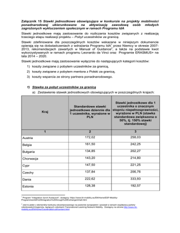 Załącznik 15 Stawki jednostkowe obowiązujące w konkursie