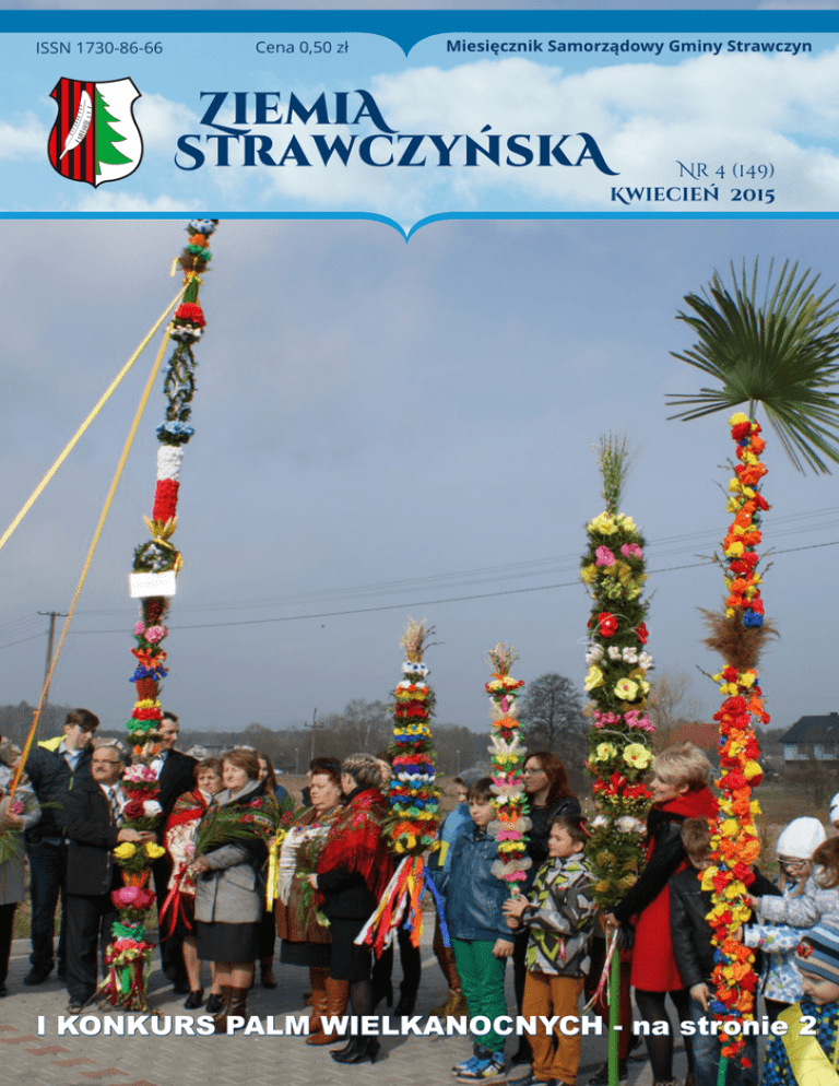 ISSN 1730-86-66 Cena 0,50 zł Miesięcznik Samorządowy Gminy Strawczyn ZiemiA StrawczyńskA Nr 4 (149) Kwiecień 2015 I KONKURS PALM WIELKANOCNYCH - na stronie 2 40 nowych miejsc hotelowych przybyło w Strawczynie Szkolne Schronisko Młodzieżowe już przyjmuje gości Choć jeszcze nie otwarto go oficjalnie, to Szkolne Schronisko Młodzieżowe w Strawczynie już przyjmuje gości. Pozwalają na to kompleksowo i nowocześnie wyposażone pokoje oraz łazienki i wc. Pokoi jest 13: dwu - trzy i czteroosobowych, razem 40 miejsc. Pomieszczenia zmodernizowanego schroniska młodzieżowego w ZPO Strawczyn, prezentuje dyrektor Elżbieta Błaszczyk. I Konkurs Palm Wielkanocnych w Strawczynie Największa palma miała ponad 6 metrów Konkurs na najwyższą i najładniejszą palmę wielkanocną odbył się, po raz pierwszy, w historii gminy Strawczyn – 29 marca br. na parkingu, obok kościoła. Jego organizatrami byli: Parafia Rzymskokatolicka Wniebowzięcia NMP w Strawczynie, Urząd Gminy w tej miejscowości, Samorządowe Centrum Kultury i Sportu, Szkolne Koło Caritas i Grupa Teatralna z Rudy Strawczyńakiej. Na urządzenie schroniska pozwolila decyzja władz gminy na dokonanie gruntownej modernizacji poddasza szkoły, w którym urządzono młodzieżowy hotel. Roboty przy modernizacji przestarzałego schroniska z lat 70 wykonano sposobem gospodarczym. Część pokoi posiada łazienki, reszta gości korzystać będzie z tych pomieszczeń na korytarzu. Każdy pokój wyposażono w tapczaniki jednoosobowe, szafy, stoliki, szafki nocne i fotele. Przygotowano także kuchnię i świetlicę - stołówkę, które trzeba jeszcze wyposażyć. Założono bowiem, że goście będą mogli sami przygotować sobie śniadania i kolacje, korzystając z kuchni i jej wyposażenia. Obiady można będzie sobie zamówić w stołówce szkolnej. Warto dodać, że do schroniska na poddaszu zawiezie gości nowoczesna winda, która – oczywiście – jest już czynna. Niedawno zwiedzałem schronisko w towarzystwie dyrektor ZPO w Strawczynie Elżbiety Błaszczyk. Trzeba przyznać, że stary obiekt zamienił się w nowoczesny hotel, któremu można nadać trzy gwiazdki, choć tych nie przewidziano ze względu na status schroniska. Z obiektu już korzystają goście szkoły i gminy. Ostatnio nocowali tutaj uczniowie i ich wychowawcy z kilku krajów Europy, biorący udział w projekcie „Comenius in Love”, realizowanym przez ZPO w Strawczynie. Młodzi Europejczycy byli mocno zdziwienie standardem schroniska i chwalili sobie prawie tygodniowy pobyt w naszej gminie. ? (Kos.) sekretarz gminy Elżbiety Chodnickiej, miało sporo pracy z oceną dzieł świątecznych – wszystkie były bajecznie kolorowe i wykonane z elementów naturalnych oraz kolorowej bibuły. Przed południem jury ogłosiło werdykt – wygrała zdecydowanie palma przygotowana przez grupę mieszkańców skupionych wokół świetlicy wiejskiej w Strawczynku. Palma miała imponującą wysokość – ponad 6 metrów. Najładniejszą palmę, zdaniem jury, wykonała młodzież ze Szkoły Podstawowej w Rudzie Strawczyńskiej pod kierownictwem dyrektor SP – Agnieszki Prędoty – Gad. Podobały się także pozostałe prace, szczególnie Justyny Sagan i Doroty Surmy – na co dzień pracownic SCKiS a także uczniow ZPO w Strawczynie. Czubek ich dzieła zdobiła żywa, zielona palma. Palmy zostały poświęcone przez ks. proboszcza Tadeusza Szota, który nawiązał do tradycji świątecznych, po czym barwny korowód przeszedł do miejscowego kościoła, gdzie odbyła się uroczysta, przedświąteczna msza święta. W korowodzie widzieliśmy m.in. wójta gminy – Tadeusza Tkaczyka, który przyjął patronat nad konkursem. Warto dodać, że do sponsorów dołączyła firma „Budotrans” Jana Łakomca z Rudy Strawczyńskiej, która wypożyczyła BUS-a na przywiezienie... żywego osiołka. Zwierzę stanowiło kolejną atrakcję korowodu. „Ziemia Strawczyńska” za darmo ? Wydawca „Ziemi Strawczyńskiej” - Samorządowe Centrum Kultury i Sportu oraz wójt gminy rozważąją, by np. od II półrocza br. gazeta samorządowa naszej gminy kolportowana była bezpłatnie. Przypomnijmy, że od początku istnienia gazeta kosztuje symboliczną, co prawda, kwotę 50 gr, ale jednak. Zwolnienie z tej opłaty, podobnie jak to funkcjonuje w innych gminach naszego regionu, ułatwiłoby kolportowanie naszej gazety. Redakcja jest zdecydowanie za ! Korowód z palmami w drodze do kościoła w Strawczynie. Celem konkursu było: kultywowanie tradycji wykonywania palm wielkanocnych, zachęcenie mieszkańców gminy do podtrzymywania tradycji ludowej, rozbudzenie wśród młodzieży potrzeby pielęgnowania kultury i tradycji ludowej, rozwijanie pomysłowości w ozdabianiu palm wielkanocnych. Konkurs adresowany był do ? (Kos.) wszystkich mieszkańców gminy a każdy z jego uczestników miał przgotować palmę o minimalnej wysokości 1 metra. Konkurs zorganizowano na parkingu kościelnym w Strawczynie. Już od rana gromadzili się tutaj autorzy palm wielkanocnych, głównie grupy szkolne, ale Serdecznie zapraszamy do nowej formy kontaktu z Wójtem byli też najmłodsi uczestnicy, Gminy, za pomoca formularza na stronie www.strawczyn.pl. których „pilotowali” rodzice. Odpowiedzi na nadesłane pytania również znajdą się na tej witrynie. Jury, pod przewodnictwem OKŁADKA: I Konkurs Palm Wielkanocnych w Strawczynie Fotografia: Jerzy Kosowski -2- ZiEMia StraWCzYńskA Z sesji Rady Gminy Radni uchwalili programy: opieki nad zwierzętami bezdomnymi oraz wspierania rodziny Radni Rady Gminy obradowali na kolejnej sesji 27 marca br. Wśród przyjętych uchwał znalazły się: zmiany w budżecie na 2015 rok, zmiany w Wieloletniej Prognozie Finansowej Gminy Strawczyn na lata: 2015 – 2024, uchwalono „Program opieki nad zwierzętami bezdomnymi oraz zapobiegania bezdomności zwierząt na terenie gminy Strawczyn”, oraz podjeli uchwały związane z funkcjonowaniem przedszkoli publicznych i i