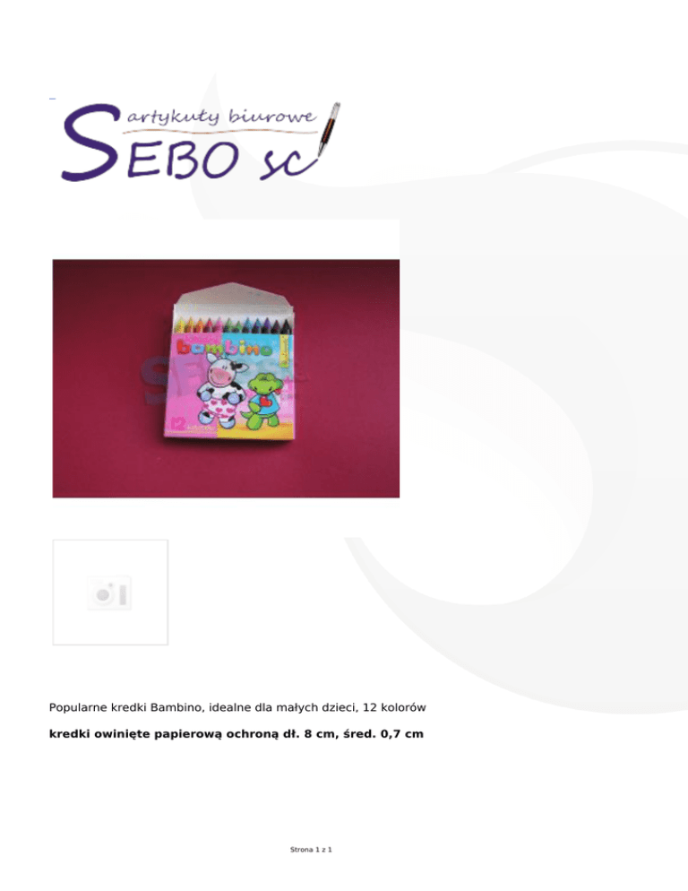 Popularne kredki Bambino, idealne dla małych dzieci, 12 kolorów kredki owinięte papierową ochroną dł. 8 cm, śred. 0,7 cm Strona 1 z 1