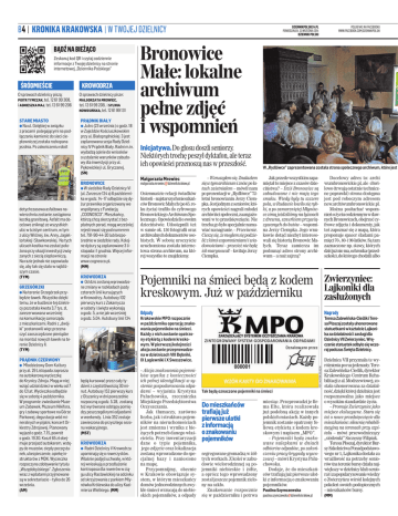 B4 | KRONIKA KRAKOWSKA | W TWOJEJ DZIELNICY BĄDŹ NA BIEŻĄCO Bronowice Małe: lokalne archiwum pełne zdjęć i wspomnień Zeskanuj kod QR i czytaj codziennie informacje z Twojej dzielnicy na stronie internetowej „Dziennika Polskiego” ŚRÓDMIEŚCIE KROWODRZA O sprawach dzielnicy piszą: PIOTR TYMCZAK, tel. 12 61 99 308, i AGNIESZKA MAJ, tel. 12 61 99 206 O sprawach dzielnicy pisze: MAŁGORZATA MROWIEC, tel. 12 61 99 208, i SYLWIA NOWOSIŃSKA, tel. 12 61 99 131 STARE MIASTO A Na ul. Gołębiej w związku z pracami polegającymi na podłączaniu kamienic do sieci ciepłowniczej została rozkopana jezdnia. Po zakończeniu robót POLUB NAS NA FACEBOOKU WWW.FACEBOOK.COM/DZIENNIKPOLSKI DZIENNIKPOLSKI24.PL PONIEDZIAŁEK, 22 WRZEŚNIA 2014 DZIENNIK POLSKI PRĄDNIK BIAŁY A Jutro (23 września ) o godz. 18 w Zajeździe Kościuszkowskim przy ul. Białoprądnickiej 3 jest zaplanowana sesja Rady Dzielnicy IV Prądnik Biały. Radni m.in. wydadzą opinie do wniosków o ustalenie warunków zabudowy dla inwestycji przy ul. Pękowickiej i ul. Gryczanej. Inicjatywa.Do głosu doszli seniorzy. Niektórych trochę peszył dyktafon, ale teraz ich opowieści przenoszą nas w przeszłość. W „Rydlówce” zaprezentowana została strona społecznego archiwum, które jest dotychczasowa asfaltowa nawierzchnia zostanie zastąpiona kostką granitową. Asfalt ma docelowo zniknąć ze wszystkich ulic w ścisłym centrum, w tym z ulicy Wiślnej, św. Anny, Jagiellońskiej i Sławkowskiej. Na tych ulicach kostka ma zostać położona przy okazji inwestycji związanych z siecią ciepłowniczą. Na razie jednak nie zapowiada się, aby tak się stało w najbliższym czasie. (TYM) GRZEGÓRZKI A Na terenie Grzegórzek przybędzie ławek. Wszystko dzięki temu, że w budżecie tej dzielnicy pozostała kwota 3,7 tys. zł, zarezerwowana wcześniej na komunikację samorządu z mieszkańcami. Radni z „dwójki” postanowili więc przeznaczyć zaoszczędzone pieniądze na montaż nowych ławek na terenie Dzielnicy II. (AM) [email protected] Osiemnaście relacji świadków historii–najstarszychmieszkańców Bronowic Małych (po 65. roku życia) trafiło do cyfrowego Bronowickiego Archiwum Społecznego. Opowiedzieli o swoim dzieciństwie. Udostępnili też w sumie ok. 150 fotografii oraz archiwalnych dokumentów osobistych. W sobotę uroczyście uruchomiona została internetowa strona archiwum, na której wszystko to znajdziemy. –Wzruszyłem się. Znalazłem sięwtymarchiwumiznówpolatach zaistniałem – mówił nam poprezentacji w „Rydlówce” 72letni bronowianin Jerzy Ciempka.Jestjednymzseniorów,których opowieści nagrali młodzi archiwiści społeczni, zaangażowani w to przedsięwzięcie. Nie trzeba go było specjalnie namawiać na nagranie. – Przeciwnie. Cieszę się, że mogłem się podzielić z kimś wspomnieniami i wiadomościami – przecież nie będę ich marynował! – kwituje Jerzy Ciempka. Jak przede wszystkim zapamiętał to miejsce z czasów dzieciństwa? – Dziś Bronowice są zabudowane i nie mają tego smaku. Wtedy były tu szczere pola, w Rudawie łowiło się rybki, a po zamarzniętej Młynówce zimą jeździliśmy na łyżwach z drewna, sznurkiem przywiązywanych do butów – wspomina Jerzy Ciempka. Jego wnukowie dotąd niezbyt interesowali się historią Bronowic Małych. Teraz zamierza im podsunąć adres strony archiwum – a nuż zajrzą? Docelowy adres to: archi wumbronowickie.pl, ale chwilowo (trwają ostatnie techniczne poprawki) strona dostępna jest pod roboczym adresem new.archiwumbronowickie.pl. Można posłuchać wspomnień o życiu codziennym wdawnych Bronowicach, obejrzeć cyfrowe zdjęcia i dokumenty, jak też zapoznać się z mapą, która proponuje spacer śladami pamięci 70-, 80- i 90-latków. Są tam zaznaczone np. stawy, których dziśjużniema,ochronka(przedszkole), doktórego chodzili albo (MM) KROWODRZA A Od dzis zostaną wprowadzone zmiany w rozkładach jazdy czterech linii kursujących w Krowodrzy. Autobusy 102 pierwszy kurs z Zakamycza w soboty i święta wykonają o godz. 5, a nie jak wcześniej o godz. 5.04. Autobusy linii 134 FOT. ADAM WOJNAR (TYM) PRĄDNIK CZERWONY A Młodzieżowy Dom Kultury przy al. 29 Listopada zaprasza na autokarową wycieczkę do Krynicy-Zdroju. Mogą w niej wziąć udział dzieci w wieku od 7 do 12 lat. Wycieczka odbędzie się w sobotę 4 października. W programie: zwiedzanie Muzeum Zabawek, Muzeum Nikifora, gry i zabawy sportowe na Górze Parkowej, degustacja wód mineralnych w pijalni, koncert Orkiestry Zdrojowej. Planowany wyjazd o godz. 7.15, powrót o godz. 19.30. Koszt 65 zł obejmuje przejazd autokarem, wstępy do muzeów, ciepły poczęstunek, ubezpieczenie, opiekę instruktorów z MDK. Wycieczka rozpoczyna zdobywanie tytułu „Wszędobylskiego”. Zgłoszenia wraz z wpłatami przyjmowane są w sekretariacie – tylko do 26 września. Małgorzata Mrowiec BRONOWICE A W siedzibie Rady Dzielnicy VI (ul. Zarzecze 124 a) 6 października w godz. 14–17 odbędzie się dyżur prawnika organizowany we współpracy z Fundacją „COGNOSCO”. Mieszkańcy, którzą chcą skorzystać z bezpłatnych porad, mogą wcześniej rejestrować się pod numerem tel. 791-90-44-20 lub bezpośrednio w siedzibie rady. Kolejne dyżury są zaplanowane 3 listopada i 1 grudnia. Więcej informacji na stronie www.cognosco.pl. będą kursować przez cały tydzień z częstotliwością 30 minut. Autobusy 152 pierwszy kurs z Olszanicy w dni powszednie rozpoczną o godz. 5.28, zostaną też wyrównane odstępy pomiędzy poszczególnymi odjazdami w weekendy. Linia 352 zostaje zawieszona do przyszłego sezonu wakacyjnego. (MST) KROWODRZA A Radni Dzielnicy V Krowodrza upominają się o rowerzystów. Właśnie podjęli uchwałę, w której wnioskują o przedłużenie kontrapasa dla rowerów w ciągu ulicy Racławickiej na odcinku od skrzyżowania z parkiem Młynówka Królewska do ulicy Kazimierza Wielkiego. (MM) Pojemniki na śmieci będą z kodem kreskowy