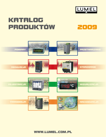 KATALOG PRODUKTÓW POMIARY 2009 PRZETWARZANIE STEROWANIE REGULACJA REJESTRACJA WIZUALIZACJA TRANSMISJA ARCHIWIZACJA www.lumel.com.pl SPIS TREŚCI MIERNIKI CYFROWE.............................................................................................................................3 MIERNIKI I PRZETWORNIKI PARAMETRÓW SIECI.....................................................................4 CĘGOWY MIERNIK PARAMETRÓW SIECI.....................................................................................5 ELEKTRONICZNE LICZNIKI ENERGII ELEKTRYCZNEJ..............................................................5 PRZETWORNIKI POMIAROWE I SEPARATORY...............................................................5 REGULATORY DO PROCESÓW PRZEMYSŁOWYCH................................................................6 STEROWNIK PROGRAMOWALNY....................................................................................................8 REGULATORY DLA CIEPŁOWNICTWA............................................................................................8 SYSTEM DO FORM Z GRZANYMI KANAŁAMI................................................................................8 REJESTRATORY......................................................................................................................................8 MIERNIKI ANALOGOWE.....................................................................................................................10 PRZYBORY POMIAROWE (BOCZNIKI · PRZEKŁADNIKI).....................................................10 PRZEKAŹNIKI · STEROWNIKI · PRZEMIENNIKI...........................................................................11 KOLUMNY SYNCHRONIZACYJNE · KALIBRATORY · CZUJNIKI POMIAROWE................11 WYŚWIETLACZE NUMERYCZNE, ALFANUMERYCZNE I GRAFICZNE...............................12 ELEMENTY INTEGRACJI SIECI POMIAROWYCH.......................................................................13 OPROGRAMOWANIE.........................................................................................................................15 2 MIERNIKI CYFROWE MIERNIKI CYFROWE serii N15 i N15Z ■ przeznaczone do pomiaru: - prądu i napięcia stałego, temperatury, rezystancji, napięcia z bocznika (N15), - innej wielkości fizycznej przetworzonej na sygnał standardowy (N15), - prądu i napięcia przemiennego, częstotliwości (mierzą sygnał True RMS - pomiar ze składową stałą lub tylko składową zmienną (N15Z), ■ dwa alarmy z wyjściem typu OC (N15), ■ stopień ochrony obudowy IP65, ■ wyświetlacz LED 14 lub 20 mm w kolorze czerwonym lub zielonym, ■ zasilanie: 230 V 50 Hz, 115 V 50 Hz, 24 V 50 Hz lub 24 V d.c., ■ idealne do montażu w tablicach o niewielkiej głębokości zabudowy, ■ wymiary gabarytowe: 96 x 48 x 64 mm. MIERNIKI CYFROWE serii N20 i N20Z ■ przeznaczone do pomiaru: - prądu i napięcia stałego, temperatury, napięcia z bocznika (N20), - innej wielkości fizycznej przetworzonej na sygnał standardowy (N20), - prądu i napięcia przemiennego, częstotliwości (mierzą sygnał True RMS, pomiar ze składową stałą lub tylko składową zmienną (N20Z), ■ definiowany czas uśredniania pomiarów, ■ dwa alarmy z wyjściem typu OC, ■ dodatkowe niezależne zasilanie 24V 30mA (opcja w N20) ■ konfiguracja parametrów za pomocą darmowego oprogramowania LPConfig, ■ wyświetlacz trójkolorowy LED wysokość znaku 14mm (kolor czerwony, zielony i pomarańczowy), ■ zasilanie: 85...253 V 50 Hz, , 20...40V 50 Hz lub d.c., ■ stopień ochrony obudowy od strony czołowej IP65, ■ idealne do montażu w tablicach o niewielkiej głębokości zabudowy, ■ wymiary gabarytowe: 96 x 48 x 64 mm. NOWOŚĆ PROGRAMOWALNE MIERNIKI CYFROWE serii N11 i N12 ■ przeznaczone do pomiaru: - prądu i napięcia stałego, - rzeczywistej wartości skutecznej prądu lub napięcia przemiennego, - temperatury, rezystancji, - obrotów, liczby impulsów, godzin pracy, okresu, częstotliwości, prędkości obrotowej, - parametrów sieci energetycznej 1-fazowej: mocy czynnej, biernej i pozornej, cos φ, tg φ, kąta, energii czynnej, biernej i pozornej, częstotliwości, - wyświetlania lub zadawania wartości po RS485, (N12B), - przechowywania i wyświetlania war tości wybranego rejestru z ur ządzenia dołączonego do magistrali, (N12B), ■ wyświetlacz LED 14 lub 20 mm, w kolorze czerwonym lub zielonym, ■ wyjścia: przekaźnikowe (N11), przekaźnikowe analogowe i cyfrowe RS-485 - protokół MODBUS (N12), ■ zasilanie: 85...253 V a.c./d.c. lub 20...40 V a.c./d.c., ■ idealne do montażu w tablicach o niewielkiej głębokości zabudowy, ■ programowalne funkcje pomiarowe i pomocnicze, ■ wymiary gabarytowe: 96 x 48 x 84 mm (N11), 96 x 48 x 93 mm (N12). MIERNIKI CYFROWE NA SZYNĘ – N17Z ■ ■ ■ ■ ■ przeznaczone do pomiaru napięcia i prądu przemiennego oraz częstotliwości, mierzą sygnał True RMS (pomiar ze składową stałą) lub tylko składową zmienną, pole odczytowe 4 lub 3 cyfrowe w kolorze czerwonym lub zielonym, zasilanie: 230V, 115, 24V 50/60Hz lub 24V d.c., wymiary zewnętrzne: 52,5 x 90 x 64,5mm. PROGRAMOWALNE MIERNIKI CYFROWE Z WIELOBARWNYMI BARGRAFAMI serii NA ■ przeznaczone do pomiarów: - poziomu, przepływu, ciśnienia, wilgotności i innych wielkości nieelektrycznych przetworzonych na sygnał standardowy, - temperatury, rezystancji, - prądu lub napięcia stałego, ■ jeden (NA3, NA5, NA21) lub dwa (NA6, NA22) kanały pomiarowe, ■ idealne do montażu w tablicach synoptycznych, pulpitach sterowniczych i systemach komputerowych w celu kontroli ważnych parametrów procesu, ■ wysoka klasa dokładności, programowalne podzakresy pomiarowe, ■ rejestracja sygnału mierzonego, ■ bargrafy diodowe: 7-barwne, 3-barwne (NA3, NA5, NA6) i 1-barwne lub wyświetlacz fluorestencyjny (NA2), ■ możliwość programowania koloru bargrafu (NA3, NA5, NA6), ■ wyjścia: przekaźnikowe, analogowe i cyfrowe RS
