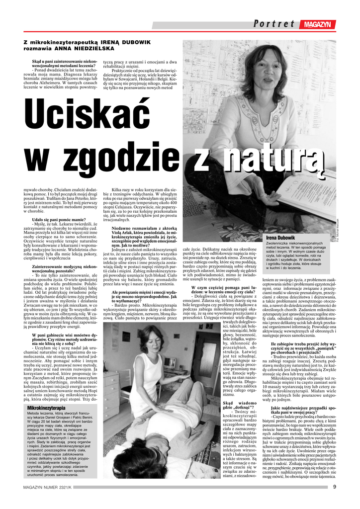 9 Z mikrokinezyterapeutk¹ IREN¥ DUBOWIK rozmawia ANNA