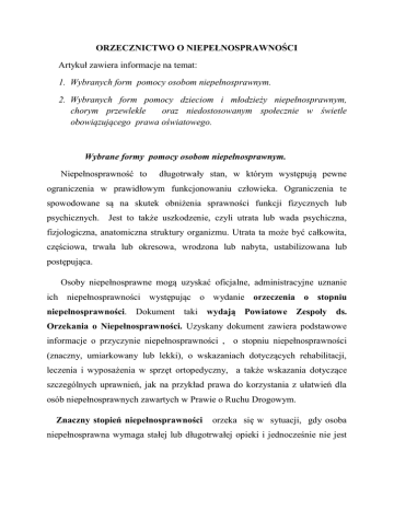 ORZECZNICTWO O NIEPEŁNOSPRAWNOŚCI Artykuł zawiera