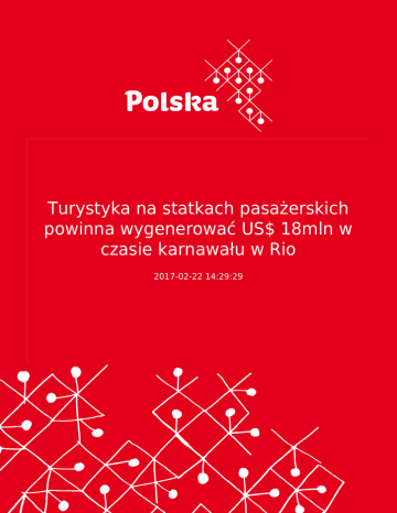 Turystyka na statkach pasażerskich powinna wygenerować US$ 18mln w czasie karnawału w Rio 2017-02-22 14:29:29 2 Oczekuje się, że około 50 tysięcy osób przyjedzie do Rio de Janeiro poprzez pirs Maua, usytuowany na terenie portu Rio de Janeiro (RJ) powinno gościć 14 statków oceanicznych w okresie karnawału. Oczekuje się, że do 28 lutego około 50 tysięcy osób przyjedzie do stolicy Rio de Janeiro przez pirs Maua, na terenie portu. Przewiduje się, że większość statków przypłynie w niedzielę, w sumie siedem transatlantyków zacumowanych w tym miejscu. Miasto szacuje, że tylko tego dnia ruch turystów osiagnie około 35 tysiecy osób, razem z pasażerami i członkami załóg. W ostatnią niedzielę (19), ponad 4 tysiące pasażerów przybyło z Santos do Rio, rejs kontynuowany jest do Salvadoru. Kierownik operacji terminalu morskiego, Alexandre Gomes, szacuje zastrzyk około US$ 18 mln dla kasy miasta. "Operacja karnawał jest dość duża i należy ją porównać do mega imprezy," powiedział. W tym okresie liczba pracowników wzrosła czterokrotnie. Działają oni w takich dziedzinach, jak operacje terminalowe, tranzyt, przewóz bagażu, zapewnienie bezpieczeństwa, itp. Do kwietnia tego roku, 93 statki powinny zawinąć do pirsu Maua z około 350 tysiącami osób na pokładzie, w tym pasażerowie i członkowie załóg, którzy zasilą kasę miasta kwotą US$ 105 mln. 3
