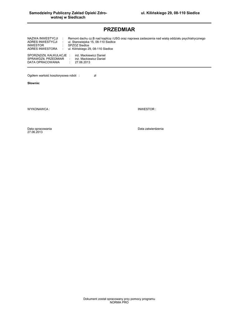 Remont dachu kaplica 2 - Samodzielny Publiczny Zakład Opieki