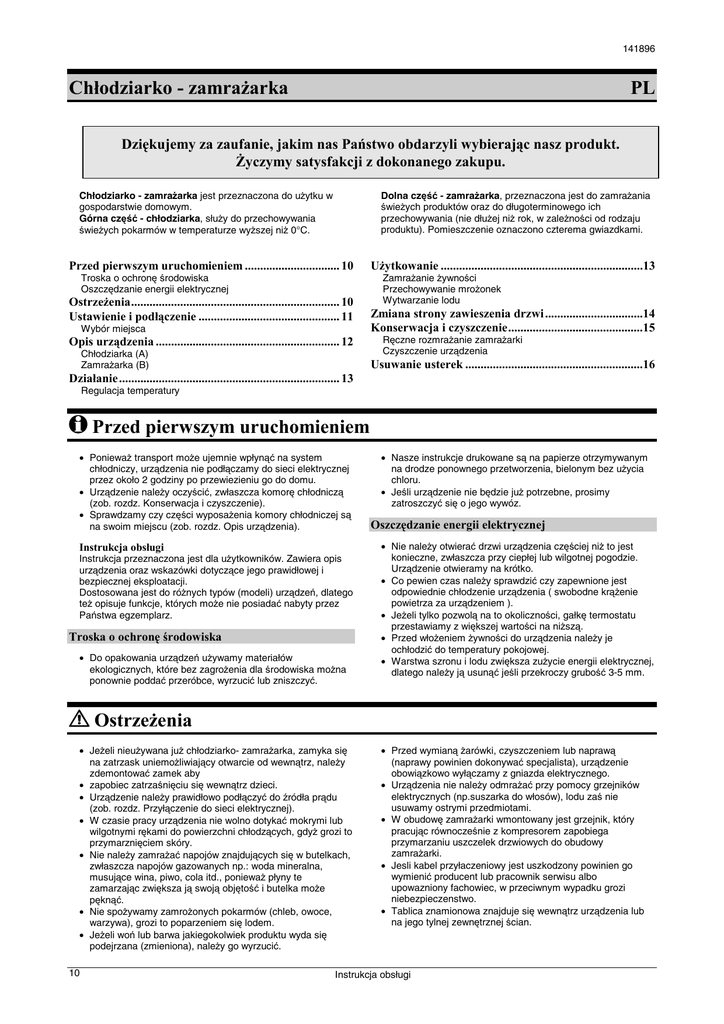 Chłodziarko - zamrażarka PL Przed pierwszym uruchomieniem