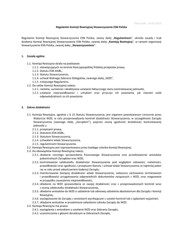Regulamin Komisji Rewizyjnej Stowarzyszenia ESN Polska