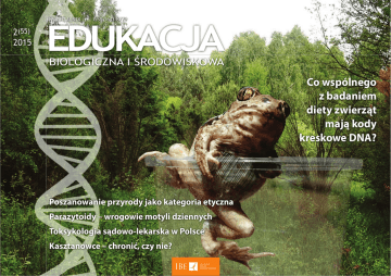 .:$5TALNI. ,661 2(55) %,2/2*,&=1$,Ħ52'2:,6.2:$ Co wspólnego z badaniem diety zwierząt mają kody kreskowe DNA? Poszanowanie przyrody jako kategoria etyczna Parazytoidy – wrogowie motyli dziennych Toksykologia sądowo-lekarska w Polsce Kasztanowce – chronić, czy nie? w numerze: 2/2015 1 narzędzia dydaktyczne jak uczyćpomysły scenariusze zajęć wydarzenia NAUKAprzyroda narzędzia w internecie SZKOŁA jak zainteresować 3 Marta Czernik Co wspólnego z badaniem diety zwierząt mają kody kreskowe DNA? 58 90 Recenzja książki: Krukowaty czy sikora? 11 Magdalena Czajkowska Teoria metronomu błonowego 91 Recenzja książki: Dlaczego zebry nie mają wrzodów? Psychofizjologia stresu 92 Recenzja książki: Die schlaue Katze und andere erlebte Episoden 93 Konferencja Ideał uniwersytetu Krzysztof Wróbel, Adam Wróbel Ból – analiza zagadnienia, przegląd piśmiennictwa 27 Sylwia Chomicka Parazytoidy – wrogowie motyli dziennych 34 38 51 Ewa Tarnowska Odporność nornicy rudej na boreliozę Paweł Jonczyk, Magdalena Potempa, Michał Janerka, Marek Kucharzewski Grelina – niewielki peptyd, WIELKIE możliwości Janusz Majcherek Poszanowanie przyrody jako kategoria etyczna w perspektywie biocentrycznej NAUKA – artykuły przede wszystkim o charakterze przeglądowym, adresowane do osób zainteresowanych naukami przyrodniczymi – dotyczą głównie zagadnień biologii i biochemii, ale mogą też obejmować problematykę pozostałych dyscyplin przyrodniczych. W naszym zamierzeniu mają zarówno dostarczyć rzetelną wiedzę, jak i skłonić do dyskusji, jakie treści i w jakiej formie warto proponować nauczycielom, by pomóc im w nauczaniu. Sprawia to, że dział ten ma charakter przede wszystkim pedagogiczny. Kamil Jurowski, Anna Jurowska, Małgorzata Krzeczkowska, Wojciech Piekoszewski „Wszystko jest trucizną i nic nie jest trucizną” – toksykologia sądowo-lekarska w Polsce 63 MATERIAŁ Anna Kot Zagadnienia bioetyczne na lekcjach biologii i przyrody w szkole ponadgimnazjalnej 70 Aleksandra Szydłowska, Ilona Żeber-Dzikowska, Urszula Poziomek Śmierć komórki – znaczenie dla organizmu – konspekt zajęć KONSPEKT Sebastian Pilichowski Kasztanowce – chronić, czy nie? – badawczy projekt edukacyjny KONSPEKT 75 80 Fundacja „PRZYSZŁOŚĆ W NAUCE” Informacje i opinie: Fundacja „PRZYSZŁOŚĆ W NAUCE” jako uzupełnienie systemu edukacji 84 Pracownia Przedmiotów Przyrodniczych IBE Nowe zadania PPP a potrzeby społeczne (Kraków 2015) – relacja 96 97 „Niezwykła Szkoła Naukowa” na UW Akademia Bioróżnorodności – czyli lekcje przyrody w Parku Śląskim W ZAŁĄCZNIKU – MATERIAŁY ZADANIA SZKOŁA – artykuły lub materiały przedstawiające rozmaite źródła informacji (np. serwisy i kursy internetowe), uwarunkowania nauczania (m.in. prawne i społeczne), a także metody pracy z uczniami, konspekty i scenariusze lekcji. W każdym numerze – najnowsze zadania Pracowni Przedmiotów Przyrodniczych IBE. EDUKACJA BIOLOGICZNA I ŚRODOWISKOWA | ebis.ibe.edu.pl SZKOŁA 20 zadania NAUKA recenzje informacje KRÓTKOnajnowsze odkrycia fizyka środowisko badania sz nie? o nim arze wyd rmuj nas e n ż fo wa .pl poin .edu e się ykuj @ibe ebis KRÓTKO – recenzje (książek, a nawet płyt z muzyką), zapowiedzi wydarzeń i relacje z nich, depesze o nowościach ze świata nauki oraz dyskusje i komentarze. | [email protected] | © for the edition by Instytut Badań Edukacyjnych 2015 KRÓTKO geografia zdrowie biologia chemia 2 Redaktorzy merytoryczni: Urszula Poziomek, Jolanta Korycka-Skorupa Kontakt z redakcją i propozycje tekstów: [email protected] Strona internetowa: ebis.ibe.edu.pl Adres redakcji: ul. Górczewska 8, 01-180 Warszawa Rada naukowa przewodniczący Rady: prof. zw. dr hab. Adam Kołątaj (Instytut Genetyki i Hodowli Zwierząt PAN, Jastrzębiec), zast. przewodniczącego: prof. dr hab. Katarzyna Potyrała (Uniwersytet Pedagogiczny w Krakowie), a także: dr hab. Ondrej Hronec (Uniwersytet w Presowie, Słowacja), prof. dr hab. Daniel Raichvarg (Uniwersytet Burgundzki w Dijon, Francja), prof. dr hab. Valerij Rudenko (Wydział Geograficzny, Uniwersytet w Czerniowcach, Ukraina), prof. zw. dr hab. Danuta Cichy (założyciel EBiŚ) prof. zw. dr hab. Wiesław Stawiński (emerytowany profesor Uniwersytetu Pedagogicznego w Krakowie), dr Renata Jurkowska (Uniwersytet w Stuttgarcie, Niemcy), dr Paul Davies (Institute of Education, University of London) Poza radą czasopismo posiada również zespoły doradcze oraz stałych recenzentów – zob. na stronie: ebis.ibe.edu.pl Wydawnictwo Wydawca: Instytut Badań Edukacyjnych, ul. Górczewska 8, 01-180 Warszawa Zdjęcie i grafika na okładce: Beata Czapska Skład i łamanie: Marcin Trepczyński czasopismo punktowane: 5 punktów, indeksowane w bazach CEJSH i Index Copernicus wersją referencyjną czasopisma jest wydanie elektroniczne Takao Ishikawa Szanowni Czytelnicy, czas płynie nieprawdopodobnie szybko. Dopiero niedawno wydawaliśmy EBiŚ w języku angielskim, a już mam początek wakacji. Dla redakcji oznacza to, że nadszedł czas na przekazanie Państwu drugiego numeru kwartalnika. W tym roku postaraliśmy się o to, by mieli Państwo różnorodne artykuły do czytania przez całe wakacje. W dziale NAUKA mamy aż siedem tekstów! Letniemu lenistwu może towarzyszyć lektura pracy opisującej teorię metronomu błonowego. Dowiemy się, co właściwie decyduje o naszym BMR. Innym artykułem, również dotyczącym metabolizmu komórkowego, jest praca Grelina – niewielki peptyd, WIELKIE możliwości. Wzrost apetytu powodowany jest przez ten hormon peptydowy, dlatego za każdym razem, gdy będziemy myśleć o posiłku lub przekąsce, warto przypomnieć sobie o grelinie. Jeśli pójdziemy w teren, przydatna może się okazać lektura artykułu Odporność nornicy rudej na boreliozę. Dzięki niej będziemy wiedzieli, jaką rolę pełni ten gryzoń w rozprzestrzenianiu się boreliozy. NAUKA Sekretarz redakcji: Marcin 