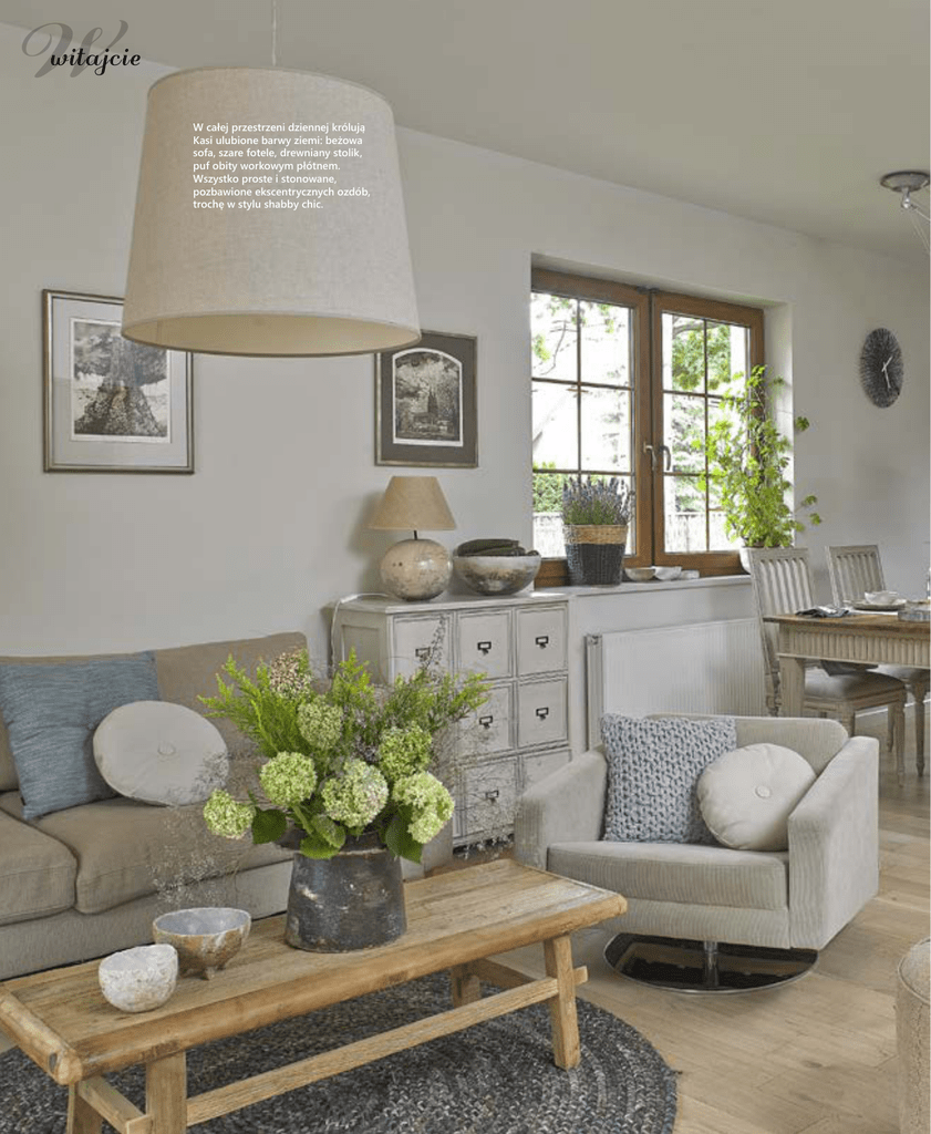 W witajcie W całej przestrzeni dziennej królują Kasi ulubione barwy ziemi: beżowa sofa, szare fotele, drewniany stolik, puf obity workowym płótnem. Wszystko proste i stonowane, pozbawione ekscentrycznych ozdób, trochę w stylu shabby chic. Na wydmie pośród sosen projekt: Katarzyna Białek, zdjęcia: Michał Skorupski; tekst i stylizacja: Katarzyna Mitkiewicz Od żyznych czarnoziemów Kasia woli piach i glinę, ceni surową prostotę i naturalne barwy. Swój dom odnalazła na piaszczystej polanie pośród sosen i urządziła tak, by wraz z lasem i ogrodem tworzył estetyczną całość i żeby dobrze się tu wkomponowały gliniane wyroby jej własnych rąk. Kasia Stefańska Białek mieszka w Wesołej, najbardziej zielonej dzielnicy Warszawy gdzie proporcje terenów leśnych do zabudowy wynoszą 60 do 40. – Las jest zawsze piękny, o każdej porze roku – mówi Kasia. – I zawsze interesujący i inspirujący. Obserwuję i uczę się go z wielką przyjemnością. Spotykam innych pasjonatów, którzy chętnie dzielą się swoją wiedzą i zarażają przyrodniczym bakcylem. To niezwykłe wychodzić z domu na spacer i spotykać po drodze sarnę lub łosia. Można w okolicy doliczyć się 20 gatunków ptaków, są budki dla nietoperzy, hotele dla owadów. Powietrze pachnie sosnową żywicą. Ze względu na walory uzdrowiskowe przed wojną działało tu sanatorium dla dzieci – opowiada zachwycona. Nawet poduszki, choć kolorowe nie kłują w oczy – przybrudzone lub pastelowe barwy wody pasują tu idealnie. Zamiast róż lub tulipanów Kasia woli lawendę i hortensje. Kapelusz (pełni rolę wazonu na kawowym stoliku) i zając to dzieła Kasi stworzone na XI Biennale Ceramiki Stowarzyszenia Keramos. Zielone i fioletowe owoce i warzywa fantastycznie wyglądają na glinianych paterach i w misach projektu i autorstwa gospodyni. Nie wiadomo czy to dekoracja czy zdrowa przekąska. Z avocado i selera, lub z agrestu i borówek Kasia robi doskonałe smoothie. Zauroczył ją tutejszy kościół. Wybudowany na wydmie w stylu wczesnochrześcijańskim, z przepięknymi polichromiami profesora Jerzego Nowosielskiego, idealnie spójny, ciągle robi na niej ogromne wrażenie. Kasia z pasji i profesji jest ceramiczką. Uczyła się w żoliborskiej pracowni stowarzyszenia Keramos, a od czterech lat ją współtworzy. Zgadnijcie, czym się inspiruje w pracy. Oczywiście lasem. Leśną fascynację widać wyraźnie w jej pracach. Tworzy kamionkowe, proste naczynia stołowe, wazony, misy, pojemniki na rośliny głównie z szamotowej gliny delikatnie barwionej w kolorach ziemi. Część naczyń powstaje z form robionych z liści, kory lub papieru. Wszystkie mają przede wszystkim dobrze służyć, a dopiero potem ładnie wyglądać. Jej ceramiczne prace tworzą charakterystyczny klimat domu. Dobrze pasują tu meble z naturalnego, olejowanego drewna, na przykład stolik kawowy z każdą jej misą tworzy idealną parę. Dobrze odnalazły się tu rzeczy z Meubles de Charme. Kasia marzyła, żeby mieć duży, drewniany stół z historią, taki „po babci”. W trakcie jego poszukiwań poznała właścicielkę tej firmy, Monikę Le Felic i zobaczyła sprowadzane przez nią meble. Ręcznie robione we Francji według starych wzorów i delikatnie postarzane metodą poco vecchio. Kasia wybrała stół ze szczotkowanym teakowym blatem, na którym jej ceramika wygląda bardzo dobrze. Dobrała też krzesła, komodę i lniane zasłony – wszystko w wymiarach i kolorach, jakie najbardziej jej odpowiadały. Prosty i naturalny charakter ma także pozostała część domu. Zabudowę kuchenną i łazienkową pod wymiar idealnie wykonała firma Euro-stol, a w sypialni obok łóżka stanęły stoliki nocne z surowego, dębowego drewna zrobione przez Zabudowę kuchenną według projektu Kasi wykonała firma Eurostol. Uchwyty zostały wycięte w drzwiach szafek, żeby nie zakłócać prostej, eleganckiej formy dodatkowymi elementami ozdobnymi i nie zabierać cennej przestrzeni. Płytki na ścianach z kolekcjiTubądzin Sant Marti. Stół i krzesła są ręcznie toczone w drewnie i postarzane metodą poco vecchio. We wnetrzu świetnie odnalazła sie prosta nowoczesna lampa Tolomeo od Artemide. Grafiki przedstawiające kościoły wrocławskie są autorstwa Jana Kaczkowskiego. Sypialnia jest urządzona prosto i bardzo stylowo. Otwarte szafki nocne Kasia zaprojektowała sama. Uwagę przyciągają subtelne dodatki: taca i skrzynkowa walizeczka z okuciami. Drewniana konstrukcja przy wannie powstała z konieczności – wszystkie dostępne baterie wolnostojące okazały się za wysokie. utalentowanego stolarza pana Piotra Kowalskiego (z Euro-stol). Czyli prostota w każdym calu, żadnych ozdóbek i uchwytów, a drewno zachowane w swej prawdziwej naturalnej fakturze i kolorze. Taras i ogród nie mogły odbiegać od tego klimatu. – Chciałam, żeby połączyły dom z otaczającym go, rosnącym na piaszczystych wydmach sosnowym lasem – mówi Kasia. Dlatego zasadziła tu tylko rośliny, które lubią kwaśną ziemię: hortensje, różaneczniki, konwalie i paprocie. Na płocie wiją się pnącza: dzikie wino, klematis i kokornak, a przed domem jeszcze jest niewielki, ale za to pachnący w słońcu ogródek ziołowy z lawendą, rozmarynem, tymiankiem, szałwią i miętą. I tak krąg się zamyka, bo świeże zioła doskonale prezentują się w wazonach i misach roboty gospodyni, a potrawy podane na autorskich talerzach także lepiej smakują. Wydaje się, że pomysł Kasi na harmonijne, spokojne i proste wnętrze ze sporym dodatkiem ceramiki jest całkiem udany. A wy jak myślicie? Pojemną zabudowę pod umywalki zrobiono według projektu Kasi. Na podłodze – mozaika przemysłowa z teaku. Na tarasie świetnie czują się rośliny w donicach (hortensje ze Świata Zieleni w Starej Iwicznej), a także szklane lampiony i gliniane lampki w kształcie domków autorstwa Gospodyni.