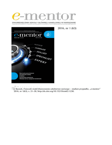 2016, nr 1 (63) J. Buczek, Francuski model finansowania szkolnictwa wyższego – studium przypadku, „e-mentor” 2016, nr 1(63), s. 21–30, http://dx.doi.org/10.15219/em63.1230. Francuski model finansowania szkolnictwa wyższego – studium przypadku1 Jolanta Buczek W artykule omówiono najważniejsze zmiany zachodzące obecnie w finansowaniu francuskich uczelni w zakresie poziomu, struktury i mechanizmów alokacji środków płynących z budżetu centralnego. Przeprowadzoną analizę oparto na danych zastanych (Eurostat). Opracowanie rozpoczyna analiza danych dotyczących demografii, liczby uczelni wyższych i uczęszczających do nich studentów. Następnie opisano ewolucję systemu finansowania szkół wyższych, zaprezentowano cele stawiane przed sektorem edukacji wyższej, przeanalizowano główne dochody uczelni oraz zidentyfikowano obecnie stosowane mechanizmy dystrybucji środków publicznych i sposobów ich alokacji. Omówiono również zagadnienia związane z programami wsparcia studentów i ich rodzin oraz opłatami za studia. Na zakończenie przedstawiono obszary działalności uczelni, które podlegają ocenie przez powołane do tego specjalne agencje rządowe. Uczelnie wyższe są obecnie jedną z sił kreujących rozwój ekonomiczny i zwiększających konkurencyjność gospodarki. Mówi się nawet o „rewolucji akademickiej” (academic revolution)2, która – jak wskazuje Philip G. Altbach – ma bezprecedensowy charakter, bo pociąga za sobą rozległe, globalne zmiany3. Obecnie jesteśmy świadkami dyskusji nad kierunkiem tych zmian4. Z jednej strony debatuje się o roli środowiska akademickiego (w tym uniwersytetów w rozumieniu instytucji) w kreowaniu postępu naukowego i technologicznego oraz rozwoju intelektualnym społeczeństwa, a z drugiej – wskazuje się jego słabości, wynikające m.in. z konieczności dokonywania wyboru pomiędzy wysoką jakością kształcenia a dużą liczbą absolwentów, „zawodów” w produktywności środowiska akademickiego, przywiązywania zbyt dużej wagi do rankingów czy instrumentalizacji dyplomów wyższych uczelni5. Mamy obecnie do czynienia z redefinicją zadań stawianych przed uczelniami i roli samego wyższego wykształcenia, gdyż w elitarnym (można rzec pierwotnym) rozumieniu uczelnie kształciły w obszarach nauk teoretycznych, oderwanych od praktyki, przemysłu i gospodarki. Dyplom był przepustką do uczestnictwa w życiu intelektualnym i naukowym. Natomiast w egalitarnym (współczesnym) rozumieniu, prezentowanym m.in. przez M. Trowa, mamy do czynienia z umasowieniem wyższego wykształcenia, gdyż ponad 15 proc. osób urodzonych w danym roku podejmuje kształcenie na poziomie wyższym6. Z danych Eurostatu wynika, że wśród mieszkańców krajów Unii Europejskiej w wieku 20–24 lat już w 1998 roku odsetek osób, które podejmują studia, przekroczył 15 procent, a obecnie wynosi ponad 30 procent. 1 Artykuł został opracowany na podstawie danych pochodzących z badania Finansowanie edukacji wyższej w wybranych krajach europejskich. Od modelu egalitarnego do elitarnego, przeprowadzonego w ramach projektu systemowego Badanie jakości i efektywności edukacji oraz instytucjonalizacja zaplecza badawczego współfinansowanego przez Unię Europejską ze środków Europejskiego Funduszu Społecznego i realizowanego przez Instytut Badań Edukacyjnych w Warszawie. 2 M. Kwiek, Transformacje uniwersytetu. Zmiany instytucjonalne i ewolucje polityki edukacyjnej w Europie, Wydawnictwo Naukowe UAM, Poznań 2010, s. 59. 3 P.G. Altbach, L. Reisberg, L.E Rumbley, Trends in global higher education. Tracking and academic revolution. Executive summary. A report prepared for the UNESCO 2009 World Conference on Higher Education, Paris 2009, http://unesdoc.unesco. org/images/0018/001831/183168e.pdf, [26.02.2016]. 4 K. Denek, Uniwersytet w perspektywie społeczeństwa wiedzy. Dydaktyka akademicka i jej efekty, WSiP, Poznań 2011, s. 78; K. Denek, Transformacje systemowe szkolnictwa wyższego, [w:] W. Skrzydlewski, S. Dylak (red.), Media – edukacja – kultura. W stronę edukacji medialnej, Polskie Towarzystwo Technologii i Mediów Edukacyjnych, Poznań–Rzeszów 2012, s. 51–62, https://repozytorium.amu.edu.pl/jspui/bitstream/10593/6038/1/ Transformacja-M-E-K-2012.pdf, [26.02.2016]. 5 A. Dziedziczak-Fołtyn, Recepcja przemian instytucji szkoły wyższej – szkic o dwóch formacjach w dyskursie naukowym, „Nauka i Szkolnictwo Wyższe” 2014, nr 1–2(43–44), s. 30–45, https://repozytorium.amu.edu.pl/jspui/bitstream/10593/12069/1/ CPP_RPS_vol.82_Dziedziczak-Foltyn.pdf, [26.02.2016]. 6 M. Trow, Problem In the Transition from Elite to Mass Higher Education, Carnegie Commission on Higher Education, Berkley 1973, http://files.eric.ed.gov/fulltext/ED091983.pdf, [26.02.2016]. luty 2016 21 metody, formy i programy kształcenia Edukacja wyższa jako taka nie powinna być postrzegana wyłącznie w kategoriach dobra publicznego, choćby dlatego, że staje się ona dobrem zakupionym przez odbiorców prywatnych, a więc rysuje się tutaj jej dwoistość. Bez wątpienia edukacja niesie ze sobą pozytywne efekty zewnętrzne, a jej rozwój jest społecznie akceptowany i pożądany – bez względu na wielkość popytu. Wobec powyższego kraje europejskie muszą stawiać czoła obecnej sytuacji gospodarczej i społecznej, szukając jednocześnie efektywnych mechanizmów finansowania kształcenia akademickiego. Przedmiotem analizy w niniejszym opracowaniu uczyniono system finansowania edukacji wyższej we Francji – celem jest wskazanie charakterystycznych zmian zachodzących w tym modelu. Opracowanie ma za zadanie nie tyle ocenę czy porównanie francuskiego mechanizmu z innymi, ile jego scharakteryzowanie i wskazanie specyfiki zastosowanych rozwiązań. System organizacji i finansowania francuskiej edukacji wyższej jest wyjątkowy w skali europejskiej i choćby dlatego jest interesujący z punktu widzenia polskiego odbiorcy. Franc