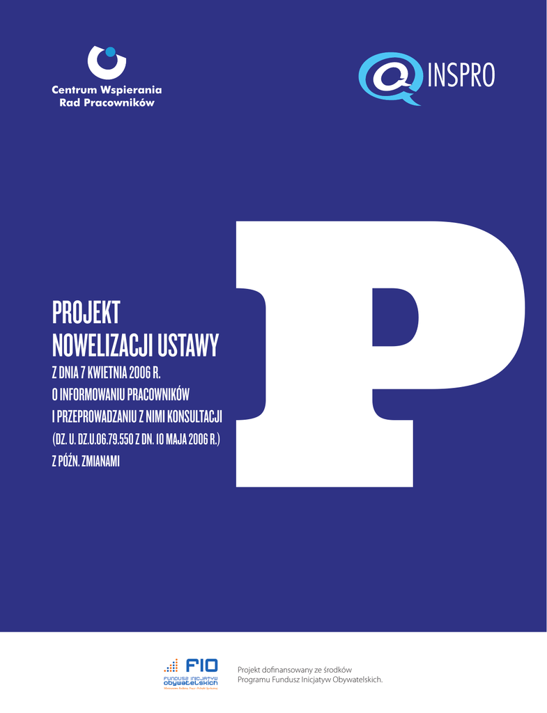 PROJEKT NOWELIZACJI USTAWY Z DNIA 7 KWIETNIA 2006 R. O INFORMOWANIU PRACOWNIKÓW I PRZEPROWADZANIU Z NIMI KONSULTACJI (DZ. U. DZ.U.06.79.550 Z DN. 10 MAJA 2006 R.) Z PÓŹN. ZMIANAMI P Projekt dofinansowany ze środków Programu Fundusz Inicjatyw Obywatelskich. Instytut Spraw Obywatelskich STR. 2 Objaśnienia wprowadzonych zmian: •podwójne podkreślenie oznacza wprowadzenie nowych sformułowań, •podwójne przekreślenie oznacza skreślenie fragmentu ustawy, •komentarze i uzasadnienie zmian w przypisach oznaczonych gwiazdkami (*). Opracowano na podstawie: Dz. U. z 2006 r. Nr 79, poz. 550, z 2008 r. Nr 93, poz. 584, z 2009 r. Nr 97, poz. 805. USTAWA Z DNIA 7 KWIETNIA 2006 R. O INFORMOWANIU PRACOWNIKÓW I PRZEPROWADZANIU Z NIMI KONSULTACJI 1) Z PÓŹN. ZMIANAMI ART. 1. 1. Ustawa określa warunki informowania pracowników i przeprowadzania z nimi konsultacji oraz zasady wyboru rady pracowników. 2. Przepisy ustawy stosuje się do pracodawców wykonujących działalność gospodarczą zatrudniających co najmniej 50 pracowników. 3. Przepisów ustawy dotyczących zasad wyboru rady pracowników i ochrony jej członków nie stosuje się do: 1) przedsiębiorstw państwowych, w których tworzony jest samorząd załogi przedsiębiorstwa; 2) przedsiębiorstw mieszanych zatrudniających co najmniej 50 pracowników; 3) państwowych instytucji filmowych. 4. W podmiotach, o których mowa w ust. 3, prawo do uzyskiwania informacji i przeprowadzania konsultacji przysługuje radzie pracowniczej. ART. 2. Użyte w ustawie określenia oznaczają: 1) (uchylony); PROJEKT NOWELIZACJI USTAWY O INFORMOWANIU... STR. 3 2) informowanie – przekazywanie radzie pracowników danych oraz dokumentów* w sprawach dotyczących pracodawcy umożliwiających zapoznanie się ze sprawą i zbadania;** 3) przeprowadzanie konsultacji – wymianę poglądów oraz podjęcie dialogu między pracodawcą a radą pracowników 4) grupa przedsiębiorstw – należy przez to rozumieć dwa lub więcej przedsiębiorstwa należące do przedsiębiorców powiązanych organizacyjnie lub kapitałowo, z których jeden jest przedsiębiorcą sprawującym kontrolę nad innymi poprzez posiadanie co najmniej 50% udziałów (akcji) przedsiębiorcy zależnego, albo większości głosów w zgromadzeniu wspólników (walnym zgromadzeniu akcjonariuszy) przedsiębiorcy zależnego, albo prawo do powołania lub odwołania ponad połowy członków organu zarządzającego lub nadzorczego przedsiębiorcy zależnego. Za przedsiębiorcę zależnego od przedsiębiorcy sprawującego kontrolę uważa się również przedsiębiorcę zależnego od innego przedsiębiorcy zależnego od tego przedsiębiorcy sprawującego kontrolę (zależność pośrednia). 5) zarząd centralny – należy przez to rozumieć osobę lub organ zarządzający przedsiębiorstwem, u którego istnieje więcej niż jeden pracodawca lub przedsiębiorstwem należącym do przedsiębiorcy sprawującego kontrolę w grupie przedsiębiorstw.*** ART. 3. 1. W skład rady pracowników wchodzi u pracodawcy zatrudniającego, z zastrzeżeniem art. 5 ust. 2 pkt 1: 1) od 50 do 250 pracowników – 3 pracowników; 2) od 251 do 500 pracowników – 5 pracowników; 3) powyżej 500 pracowników – 7 pracowników. 2. (uchylony). 3. (uchylony). 4. (uchylony). * Pracodawcy odmawiają dostępu radom pracowników do dokumentów utrzymując na podstawie komentarza do ustawy autorstwa Anny Pabisiak i Marcina Wojewódki (Informowanie pracowników i przeprowadzanie z nimi konsultacji, C.H.Beck, Warszawa 2007), że ustawa w dotychczasowym kształcie nic nie mówi o uprawnieniach rady do dokumentów. Tymczasem charakter dokumentu ma np. raport biegłego rewidenta, bez którego nie ma możliwości wyrobienia sobie poglądu na temat kondycji ekonomicznej przedsiębiorstwa. Informując radę Pracodawcy streszczają dokumenty mając możliwość manipulowania. W związku z tym, aby przeciąć wątpliwości należy doprecyzować, że proces informowania obejmuje także udostępnianie dokumentów, jak ma to miejsce w państwach „starej Unii” pod rządami tej samej Dyrektywy 2002/14/WE Parlamnetu Europejskiego i Rady z dnia 11 marca 2002 r. ustanawiającącej ogólne ramowe warunki informowania i przeprowadzania konsultacji z pracownikami we Wspólnocie Europejskiej zwanej dalej Dyrektywą. ** Jest to uzupełnienie w ślad za art.2 pkt f) Dyrektywy. Jej autorzy przewidują szerszy zakres procesu informowania niż tylko „zapaoznanie się ze sprawą”. Termin „zbadanie” oznacza prawo do weryfikowania danych źródłowych z których korzystał pracodawca przygotowując informację. Uzupełnienie definicji ma na celu uniemożliwienie pracodawcy ograniczenie informacji jedynie do ogólników jak to ma miejsce obecnie. Skoro Ustawodawca w uzasadnieniu do projektu ustawy w 2006 r. stwierdził, iż zapis polskiej ustawy jest tożsamy z zapisem Dyrektywy w tej materii, to nie ma powodu by dosłownie nie zacytować w tym miejscu jej sformułowania. *** Jak zauważono w komentarzu do ustawy autorstwa Jakuba Steliny i Marcina Zielenieckiego (wyd. Fundacja Gospodarcza, Gdynia 2006) posługując się wymiennie terminami przedsiębiorca i pracodawca polski Ustawodawca stworzył lukę, wykorzystywaną przez kierownictwa spółek do marginalizowania rad pracowników. Otóż Polskie prawo dopuszcza możliwość, że u jednego przedsiębiorcy może funkcjonować więcej niż jeden pracodawca. Zazwyczaj dotyczy to firm działających w wielu lokalizacjach na terenie kraju. Rady pracowników powołane u lokalnych pracodawców nie mają dostępu do informacji ich dotyczącej w centrali przedsiębiorstwa, gdzie faktycznie podejmuje się decyzje dotyczące niższych szczebli zarządzania. Taki sam efekt, w postaci ograniczenia dostępu rad pracowników do informacji ich dotyczących, istnieje w przypadku grupy kapitałowej zarządzanej przez spółkę-matkę. Rady pracowników działające w spółkach zależnych nie są w świetle aktu