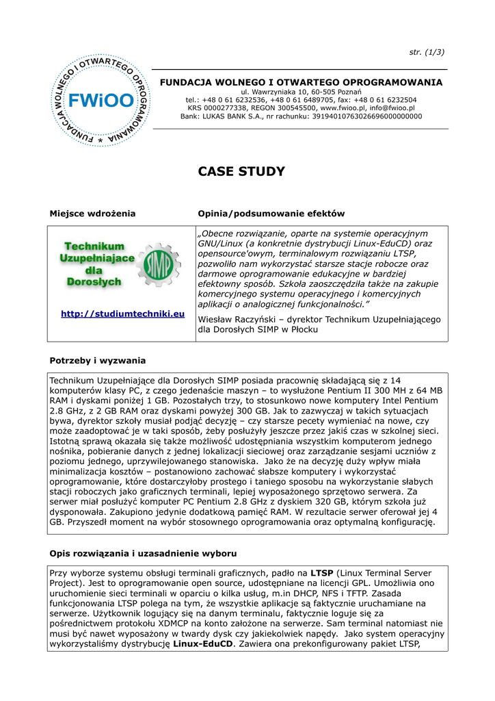 case study - Fundacja Wolnego i Otwartego Oprogramowania