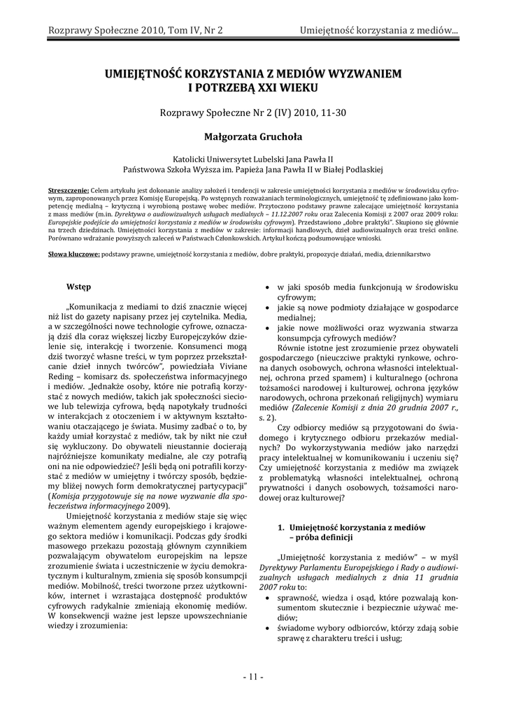 UMIEJĘTNOŚĆ KORZYSTANIA Z MEDIÓW WYZWANIEM