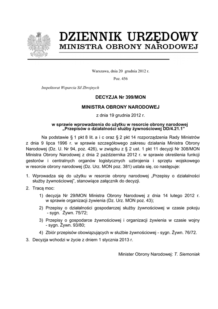 w sprawie organizacji żywienia (Dz. Urz. MON poz. 43);