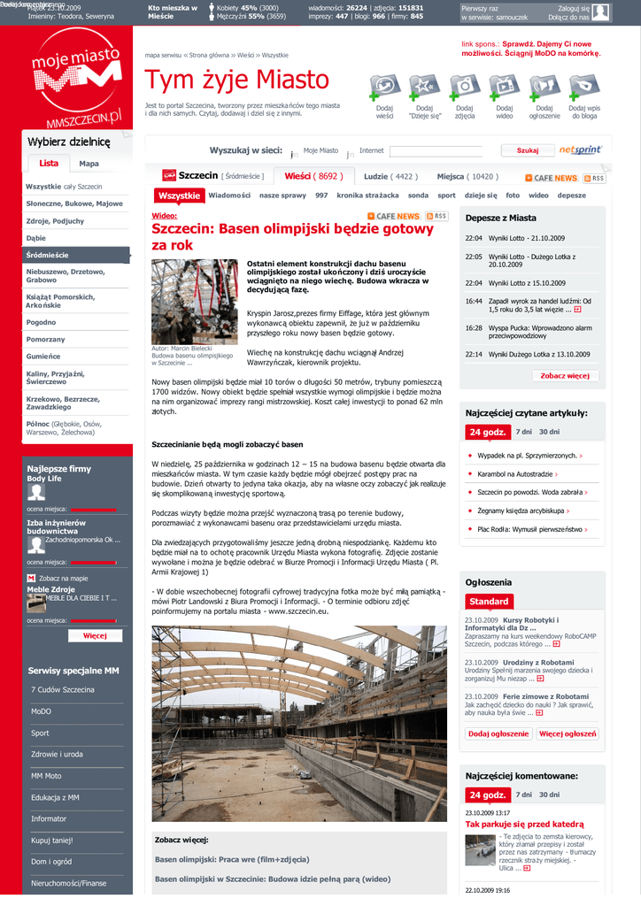 Powiadom Dodaj komentarz znajomego Piątek 23.10.2009 Imieniny: Teodora, Seweryna Kto mieszka w Mieście mapa serwisu Kobiety 45% (3000) Mężczyźni 55% (3659) Strona główna Wieści wiadomości: 26224 | zdjęcia: 151831 imprezy: 447 | blogi: 966 | firmy: 845 Pierwszy raz w serwisie: samouczek Zaloguj się Dołą cz do nas link spons.: Sprawdź. Dajemy Ci nowe możliwości. Ściągnij MoDO na komórkę. Wszystkie Tym żyje Miasto Jest to portal Szczecina, tworzony przez mieszkańców tego miasta i dla nich samych. Czytaj, dodawaj i dziel się z innymi. Wyszukaj w sieci: Lista Mapa Moje Miasto Szczecin Wszystkie cały Szczecin i j k l m n [ Śródmieście ] Dodaj wieści j k l m n Dodaj "Dzieje się" Dodaj zdjęcia Dodaj wideo Internet Dodaj ogłoszenie Dodaj wpis do bloga Szukaj Wieści ( 8692 ) Ludzie ( 4422 ) Miejsca ( 10420 ) Wszystkie Wiadomo ści nasze sprawy 997 kronika strażacka sonda sport dzieje się foto wideo depesze Słoneczne, Bukowe, Majowe Zdroje, Podjuchy Dąbie Wideo: Depesze z Miasta Szczecin: Basen olimpijski będzie gotowy za rok 22:04 Wyniki Lotto - 21.10.2009 Śródmieście 22:05 Wyniki Lotto - Dużego Lotka z 20.10.2009 Ostatni element konstrukcji dachu basenu olimpijskiego został ukończony i dziś uroczyście wciągnięto na niego wiechę. Budowa wkracza w decydującą fazę. Niebuszewo, Drzetowo, Grabowo 22:04 Wyniki Lotto z 15.10.2009 Książąt Pomorskich, Arko ńskie 16:44 Zapadł wyrok za handel ludźmi: Od 1,5 roku do 3,5 lat więzie ... Kryspin Jarosz,prezes firmy Eiffage, która jest głównym wykonawc ą obiektu zapewnił, że już w październiku przyszłego roku nowy basen będzie gotowy. Pogodno Pomorzany Autor: Marcin Bielecki Budowa basenu olimpisjkiego w Szczecinie ... Gumieńce Kaliny, Przyjaźni, Świerczewo Krzekowo, Bezrzecze, Zawadzkiego 16:28 Wyspa Pucka: Wprowadzono alarm przeciwpowodziowy Wiechę na konstrukcję dachu wciągnął Andrzej Wawrzyńczak, kierownik projektu. 22:14 Wyniki Dużego Lotka z 13.10.2009 Nowy basen olimpijski będzie miał 10 torów o długości 50 metrów, trybuny pomieszczą 1700 widzów. Nowy obiekt b ędzie spełniał wszystkie wymogi olimpijskie i będzie można na nim organizować imprezy rangi mistrzowskiej. Koszt całej inwestycji to ponad 62 mln złotych. Najczęściej czytane artykuły: Północ (Głę bokie, Osów, Warszewo, Żelechowa) 24 godz. 7 dni 30 dni Szczecinianie będą mogli zobaczyć basen Wypadek na pl. Sprzymierzonych. Najlepsze firmy Body Life W niedzielę, 25 października w godzinach 12 – 15 na budowa basenu będzie otwarta dla mieszkańców miasta. W tym czasie każdy będzie mógł obejrzeć postępy prac na budowie. Dzień otwarty to jedyna taka okazja, aby na własne oczy zobaczyć jak realizuje się skomplikowaną inwestycję sportow ą. Karambol na Autostradzie Szczecin po powodzi. Woda zabrała ocena miejsca: Izba inżynierów budownictwa Zachodniopomorska Ok ... ocena miejsca: Zobacz na mapie Meble Zdroje MEBLE DLA CIEBIE I T ... Żegnamy księdza arcybiskupa Podczas wizyty będzie można przejść wyznaczoną trasą po terenie budowy, porozmawiać z wykonawcami basenu oraz przedstawicielami urzędu miasta. Dla zwiedzających przygotowaliśmy jeszcze jedną drobną niespodziankę. Każdemu kto będzie miał na to ochot ę pracownik Urzędu Miasta wykona fotografię. Zdjęcie zostanie wywołane i można je będzie odebrać w Biurze Promocji i Informacji Urzędu Miasta ( Pl. Armii Krajowej 1) Plac Rodła: Wymusił pierwszeństwo Ogłoszenia - W dobie wszechobecnej fotografii cyfrowej tradycyjna fotka mo że być miłą pamiątką mówi Piotr Landowski z Biura Promocji i Informacji. - O terminie odbioru zdjęć poinformujemy na portalu miasta - www.szczecin.eu. Standard 23.10.2009 Kursy Robotyki i Informatyki dla Dz ... Zapraszamy na kurs weekendowy RoboCAMP Szczecin, podczas którego ... ocena miejsca: 23.10.2009 Urodziny z Robotami Urodziny Spełnij marzenia swojego dziecka i zorganizuj Mu niezap ... Serwisy specjalne MM 7 Cudów Szczecina 23.10.2009 Ferie zimowe z Robotami Jak zachęcić dziecko do nauki ? Jak sprawić, aby nauka była świe ... MoDO Sport Zdrowie i uroda Najczęściej komentowane: MM Moto 24 godz. Edukacja z MM 7 dni 30 dni 23.10.2009 13:17 Informator Tak parkuje się przed katedrą Kupuj taniej! Zobacz więcej: Dom i ogród Basen olimpijski: Praca wre (film+zdjęcia) Nieruchomości/Finanse - Te zdjęcia to zemsta kierowcy, który złamał przepisy i został przez nas zatrzymany - tłumaczy rzecznik straży miejskiej. Ulica ... Basen olimpijski w Szczecinie: Budowa idzie pełną parą (wideo) 22.10.2009 19:16 Szczecin: Zobacz wizualizacje basenu olimpijskiego (wideo) Wypadek na pl. Szczecin: Zobacz wizualizacje basenu olimpijskiego (wideo) Wypadek na pl. Około godz. 17 na pl. Sprzymierzonych zderzyły się tramwaje linii 1 i 11. Dwanaście osób zostało lekko rannych, z czego siedem odw ... 23.10.2009 07:00 Bank da nam 300 mln zł Tyle pieniędzy pożyczyło miasto na najważniejsze inwestycje. Sprawdziliśmy, na co zostaną wydane pieniądze, które będziemy oddawać ... Maciek Homis dodane 6 minut temu Ankieta Komentarzy: 0 | dodaj swój miejsce: Śródmieście, tagi: sport szczecin | budowa basenu s ... | basen w szczeci ... Czy ksiądz w kościele powinien mówić o seksie? n W żadnym wypadku. Kościół to j k l m miejsce święte i nie wolno mówić o zboczonych rzeczach Komentarze(0) n Nie powinien tego robić ani w j k l m kościele ani w domu. Obowiązuje celibat więc skąd ma coś wiedzieć n Dla mnie mówić nawet o agencie j k l m Tomku. I tak będę słuchał to, co chcę n Seks? Brzydzę się tym słowem. Ja j k l m dopiero po ślubie... nie swoim oczywiście Głosuj Najpopularniejsze tematy Sprawdź, czym żyje miasto. Oto najpopularniejsze kategorie tematyczne w ciągu ostatnich: 24 godz. 7 dni 30 dni 22.10.200926.10.2009akcja zima szczecin Anja Orthodox basen w szczecinie zostanie otworzony za rokbazylika katedralna budowa basenu szczecin