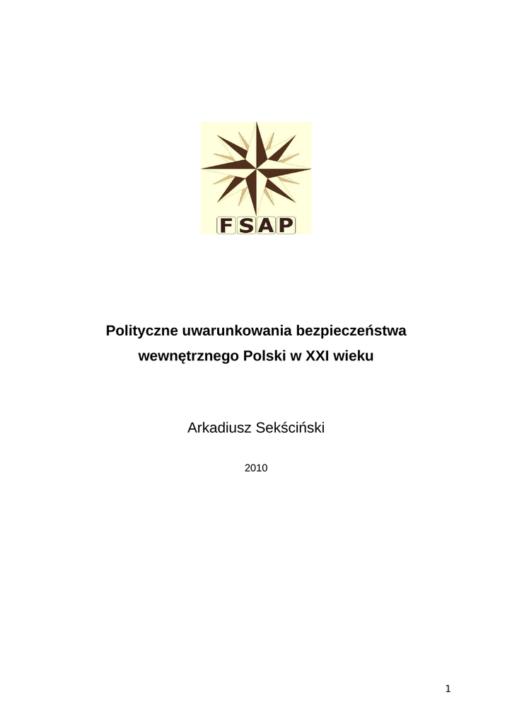 Polityczne uwarunkowania bezpieczeństwa wewnętrznego Polski w XXI wieku Arkadiusz Sekściński 2010 1 Słowa kluczowe: bezpieczeństwo wewnętrzne, uwarunkowania polityczne, zagrożenie, politologiczna analiza systemowa 1. Bezpieczeństwo wewnętrzne państwa w XXI wieku Problematyka bezpieczeństwa wewnętrznego Polski rzadko jest przedstawiana w literaturze naukowej w ujęciu politologicznym. Tymczasem wydaje się, że XXI wiek niesie ze sobą nowe uwarunkowania, które każą patrzeć – nie tylko na bezpieczeństwo wewnętrzne Polski, ale także innych państw obszaru Euro - Atlantyckiego - w zdecydowanie szerszej perspektywie niż dotychczas. Ujęcie politologiczne bezpieczeństwa wewnętrznego odnosi się do państwa z uwzględnieniem różnych płaszczyzn jego oddziaływania, w tym płaszczyzny politycznej, gospodarczej i społecznej1. Większość badaczy jako początek „nowej ery” w zakresie bezpieczeństwa wewnętrznego określa rozpad świata dwubiegunowego (upadek ZSRR i bloku socjalistycznego)2. Głównych źródeł zagrożeń bezpieczeństwa wewnętrznego przestano upatrywać w konflikcie Wschód – Zachód3. Pojawiły się również koncepcje traktujące bezpieczeństwo wewnętrzne i zewnętrzne państwa jako całość. Przykładowo szkoła kopenhaska, której jednym z przedstawicieli jest Barry Buzan zakłada, że po rozpadzie dwubiegunowego świata, bezpieczeństwo państwa należy traktować holistycznie ze względu na internacjonalizację zagrożeń4. Uznano, że dynamicznemu rozprzestrzenianiu się podlegają takie kwestie jak: handel bronią czy narkotykami, przestępczość zorganizowana, korupcja, nielegalna imigracja, itd. Zagrożenia stają się globalne i wspólne dla wielu państw. W płaszczyźnie międzynarodowej podejmowane są działania, które umacniając bezpieczeństwo jednego państwa, służą również bezpieczeństwu innych. Bezsprzecznie istotnym wydarzeniem, które wpłynęło na takie pojmowanie bezpieczeństwa wewnętrznego był atak na World Trade Center, który miał miejsce 11 września 20015. „Nowa era” w zakresie bezpieczeństwa wewnętrznego państwa wpłynęła również na rozumienie, czym jest zagrożenie. Niezależnie od różnych podejść badawczych, zagrożenie 1 S. Sulowski, O nowym paradygmacie bezpieczeństwa w erze globalizacji, w: Bezpieczeństwo wewnętrzne państwa. Wybrane zagadnienia, red. S. Sulowski, M. Brzeziński, Elipsa, Warszawa, 2009, s. 16 2 Ibidem, s. 13 3 K. Marczuk, Bezpieczeństwo wewnętrzne w poszerzonej agendzie studiów nad bezpieczeństwem, w: Bezpieczeństwo wewnętrzne państwa. Wybrane zagadnienia, red. S. Sulowski, M. Brzezińki, Elipsa, Warszawa, 2009, s. 75 4 R. Floyd, Human Security and the Copenhagen School’s Securitization Approach: Conceptualizing Human Security as a Securitizing Move, „Human Security Journal”, vol. 5, Winter 2007, s. 38 5 S. Sulowski, op.cit. s. 20. 2 określa się w relacji z pojęciem bezpieczeństwa. Stanowi ono jego przeciwieństwo i oznacza możliwość wystąpienia zjawiska niepożądanego, godzącego w określone wartości lub stwarzające dla nich niebezpieczeństwo6. W ramach zagrożenia można wskazać dwa elementy, które rozróżniamy ze względu na obiektywność i subiektywność obaw. Komponent obiektywny odnosi się do zjawisk powodujących stan niepewności, czyli takich, które tworzą rzeczywiste zagrożenia. Z kolei komponent subiektywny dotyczy sfery odczuwania i percepcji zjawisk, które są uznawane za niebezpieczne7. Jak twierdzi dr Michał Brzeziński, politolog z Uniwersytetu Warszawskiego: Percepcja zagrożenia, niezależnie od tego czy jest błędna czy prawidłowa, przekłada się na bezpieczeństwo. Nawet przy założeniu niewłaściwego rozpoznania zagrożenia lub też jego całkowitej imaginacji, zagrożenie mimo wszystko istnieje i wpływa na końcową ocenę stanu bezpieczeństwa8. Jak wielkie znaczenie dla bezpieczeństwa wewnętrznego państwa ma percepcja zagrożenia może posłużyć przykład wprowadzenia stanu wojennego w PRL 13 grudnia 1981 roku. Dysonans w kwestii oceny zagrożenia w tym czasie interwencją Armii Radzieckiej miał wymiar nie tylko subiektywny (społeczny, postrzegalny), lecz również obiektywny (racjonalny, specjalistyczny)9. Wydaje się, że zagrożenia w XX wieku i wcześniej było łatwiej określać. Wyścig zbrojeń, konflikty zbrojne czy napięcia wewnątrz państw bloku wschodniego były więcej niż odczuwalne. Z kolei w XXI wieku wydaje się, że dominuje komponent subiektywny zagrożenia. Mieszkańcy globu obawiają się wydarzeń, w których trudno określić wroga (terroryzm, kryzysy ekonomiczne, katastrofy ekologiczne). Należy zwrócić uwagę, że dotychczasowe niebezpieczeństwa nie zniknęły, ale obok nich pojawiły się zupełnie nowe, np. cyberterroryzm czy zagrożenia ekologiczne10. Dlatego nakreślenie pełnego katalogu zagrożeń dla bezpieczeństwa wewnętrznego państwa stanowi spore wyzwanie. Na potrzeby pewnej systematyzacji w niniejszym artykule zaprezentowano katalog zagrożeń państwa, których źródeł upatruje się w czynnikach politycznych, mających wymiar wewnętrzny i zewnętrzny. Wśród zagrożeń państwa, których źródeł upatruje się w czynnikach politycznych mających wymiar wewnętrzny należy przede wszystkim wymienić. 6 Ryszard Zięba, Pojęcie i istota bezpieczeństwa państwa w stosunkach międzynarodowych, „Sprawy Międzynarodowe”, 1989, s. 50-51 7 J. Prońko, System kierowania reagowaniem kryzysowym w sytuacjach nadzwyczajnych zagrożeń dla ludzi i środowiska, rozprawa doktorska, AON, Warszawa 2001. 8 M. Brzeziński, Kategoria bezpieczeństwa, w: Bezpieczeństwo wewnętrzne państwa. Wybrane zagadnienia, s. 26 9 red. Maria Izbicka, Polityczno-prawne aspekty walki politycznej i konfliktów społecznych w Polsce w latach 1980-1983, Wrocław, 1994. 10 M. Brzeziński, op. cit., s. 24 3 - okresowa lub długotrwała destabilizacja polityczna - przew