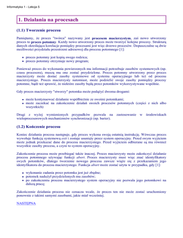swych potomków, dlatego tworzenie nowego procesu zawsze wiąże się z przekazaniem jego