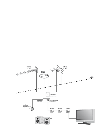 antena TV UHF antena TV VHF antena R UKF separator zasilania