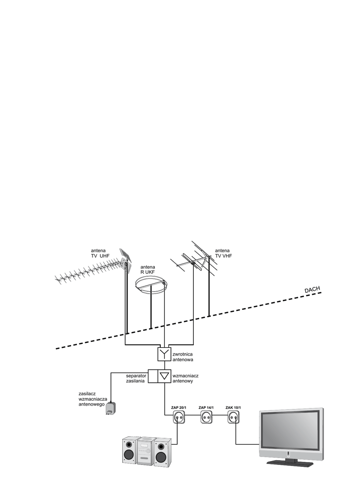 antena TV UHF antena TV VHF antena R UKF zwrotnica antenowa separator zasilania zasilacz wzmacniacza antenowego wzmacniacz antenowy ZAP 20/1 ZAP 14/1 ZAK 10/1