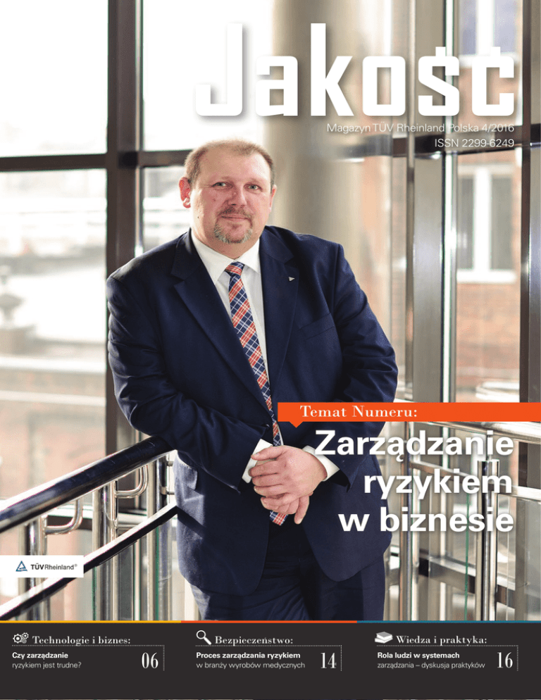 Jakosc Magazyn TÜV Rheinland Polska 4/2016 ISSN 2299-6249 Temat Numeru: Zarządzanie ryzykiem w biznesie Technologie i biznes: Czy zarządzanie ryzykiem jest trudne? 06 Wiedza i praktyka: Bezpieczenstwo: Proces zarządzania ryzykiem w branży wyrobów medycznych 14 Rola ludzi w systemach zarządzania – dyskusja praktyków 16 Słowo wstępne 6 „Statek w porcie jest bezpieczny, ale nie po to buduje się statki” to zdanie Johna A. Shed’a pochodzi z książki wydanej w 1928 roku. Trzeba przyznać, że przez lata nie straciło na aktualności. Ta metafora wydaje się szczególnie trafna w kontekście prowadzenia działalności biznesowej. Stając za sterem firmy, trzeba mieć świadomość możliwości wystąpienia sztormów i mielizn. Innymi słowy, zanim wyruszy się w rejs, trzeba oszacować ryzyko. W tym numerze Jakości sporo miejsca poświęcamy tematowi ryzyka w biznesie. Jacek Sadowski, Kierownik Sekcji Certyfikacji Systemów Zarządzania TÜV Rheinland Polska, odnosząc się do norm ISO, odpowiada na pytania redakcji dotyczące podejścia do ryzyka w różnych branżach. Poza rozwiązaniami systemowymi warto także rozważyć metody minimalizowania ryzyka poprzez badania i certyfikację wyrobów. Pisze o tym Milena Zielińska, Kierownik ds. Rozwoju Certyfikacji Wyrobów TÜV Rheinland Polska, zwracając uwagę na grupy wyrobów o podwyższonym ryzyku. Taką szczególną grupą są wyroby medyczne, regulacjom na tym rynku przygląda się nasz ekspert Maciej Ściera, Kierownik Produktu INMETRO. Kwestie dotyczące zarządzania ryzykiem to poza procesami i wymaganiami prawnymi także ludzie. O ich szczególnej roli rozmawiali praktycy systemów zarządzania w trakcie jesiennego Forum wymiany doświadczeń. Dla osób, które nie miały okazji przysłuchiwać się dyskusji panelowej, zamieszczamy obszerną relację z debaty. Im bardziej skomplikowany lub nietypowy wyrób lub im większe oczekiwania i potrzeby użytkowników czy klientów, tym większe ryzyko pojawia się w procesie cyklu życia takiego produktu. W artykule odpowiadamy na pytanie, jak zminimalizować ryzyko w projektowaniu, produkcji i sprzedaży wyrobów. Korzystając z okazji, pragnę życzyć Państwu realizacji noworocznych postanowień i bezproblemowej drogi do ich osiągnięcia. Zapraszam i życzę miłej lektury Janusz Grabka Prezes Zarządu TÜV Rheinland Polska WYDAWCA: TÜV Rheinland Polska Sp. z o.o. ul. Wolności 327, 41-800 Zabrze tel. 32 271 64 89 w.105 fax. 32 271 64 88 REDAKCJA: Agata Tynka, e-mail: [email protected] Na okładce: Jacek Sadowski, Kierownik Sekcji Certyfikacji Systemów Zarządzania, TÜV Rheinland Polska., Fot. Tomasz Grajek Źródła zdjęć: Shutterstock, Picjumbo, Thinkstock, źródła własne. SKŁAD I GRAFIKA: Tomasz Grajek TÜV Rheinland Polska KOREKTA: Joanna Owczarczyk, Anna Banach TÜV Rheinland Polska 20 Dzielenie się wiedzą i doświadczeniami z codziennej pracy związanej z systemami zarządzania było głównym celem konferencji zorganizowanej tej jesieni w Krakowie. Dyskusja panelowa prelegentów przerodziła się w prawdziwe forum wymiany pozytywnych i negatywnych doświadczeń na temat roli ludzi w systemach zarządzania. Jak podejść do tematu świadomego zarządzania ryzykiem według nowych wytycznych norm ISO 9001 i 14001 i czy słusznie temat budzi obawy. Do rozmowy zaprosiliśmy Jacka Sadowskiego, Kierownika Sekcji Certyfikacji Systemów Zarządzania TÜV Rheinland Polska. Technologie i biznes 4 Molex Sulęcin – 10 lat ciągłych zmian dzięki Lean Six Sigma 6 Czy zarządzanie ryzykiem jest trudne? 24 Bezpieczeństwo 14 Proces zarządzania ryzykiem w branży wyrobów medycznych 20 Jak zminimalizować ryzyko w projektowaniu, produkcji i sprzedaży wyrobów? Wiedza i praktyka Nowe rozporządzenie UE nr 2016/679 z 27 kwietnia 2016 roku (RODO UE ) w sprawie ochrony danych osobowych reguluje m.in. zasady ochrony przetwarzanych w firmach zbiorów tych danych. W Polsce trwają prace legislacyjne nad ujednoliceniem rozwiązań instytucjonalnych. W praktyce do zmiany jest około 800 aktów prawnych. 20 10 Norma ISO 9001:2015 oczami audytora 16 Rola ludzi w systemach zarządzania – dyskusja praktyków 22 Zmiany w prawie odnośnie ochrony danych osobowych – obowiązki przedsiębiorców 25 Z pamiętnika audytora: Ryzyko w biznesie 26 Zmienia się ISO/TS – standard zarządzania jakością w przemyśle motoryzacyjnym News ! !! 24 Jak pomóc klientowi dokonać właściwego wyboru produktu? 24 TÜV Rheinland Polska laureatem programu Inwestor w Kapitał Ludzki 2016 Technologie i biznes Molex Sulęcin – 10 lat ciągłych zmian dzięki Lean Six Sigma Molex jest jednym z największych światowych producentów złączy i akcesoriów połączeniowych. Innowacyjne rozwiązania elektroniczne oferowane przez firmę znajdują zastosowanie w wielu branżach, w tym w elektronice użytkowej, przemysłowej, motoryzacyjnej, samochodowej i medycznej. O tym, jak wyglądają procesy produkcyjne w polskim oddziale Molex rozmawiamy z Piotrem Goryńskim, Continuous Improvement Leader Black Belt w Molex Sulęcin. Proszę krótko opowiedzieć, czym zajmuje się polski oddział firmy Molex. Jak duży jest zakład w Sulęcinie? Zajmujemy się produkcją wiązek kablowych, głównie dla branży automotive i przemysłowej. Poziom zatrudnienia to obecnie około 1000 pracowników. 4 W trakcie listopadowego Forum wymiany doświadczeń, zorganizowanego przez TÜV Rheinland Polska opowiedział Pan o doświadczeniach związanych z prowadzeniem projektów Lean Six Sigma. To już blisko 10 lat ciągłych zmian, jak podsumowałby Pan ten czas? Był to czas zdobywania doświadczenia oraz wiedzy i jej implementacji przez cały zespół. Było i jest wciąż sporo wyzwań, jednakże radzimy sobie z nimi coraz lepiej. Cały proces Global Lean Six Sigma ma się bardzo dobrze. Przez niespełna 10 lat usprawniliśmy nasze procesy produkcyjne i administracyjne, zarówno pod względem poprawy jakości, jak i p