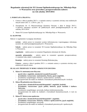 Regulamin rekrutacji - XI LO im. Mikołaja Reja