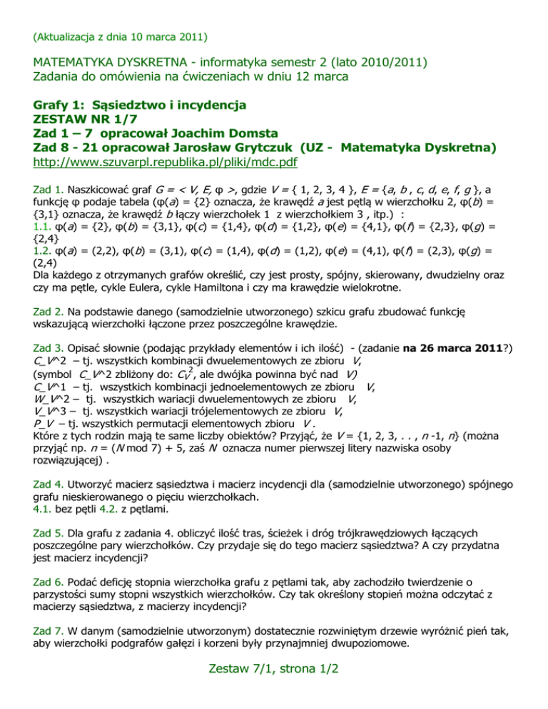 Zad 8 - 21 opracował Jarosław Grytczuk (UZ - Matematyka Dyskretna)