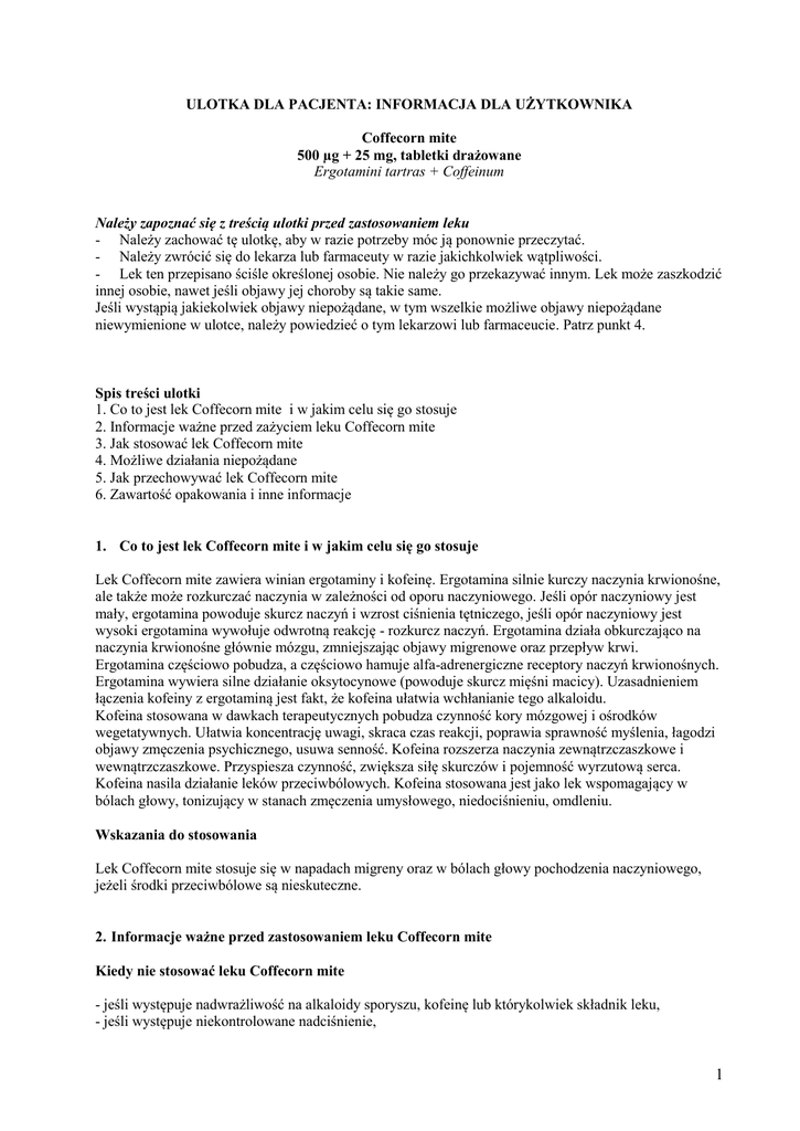 1. Co to jest lek Coffecorn mite i w jakim celu się go stosuje